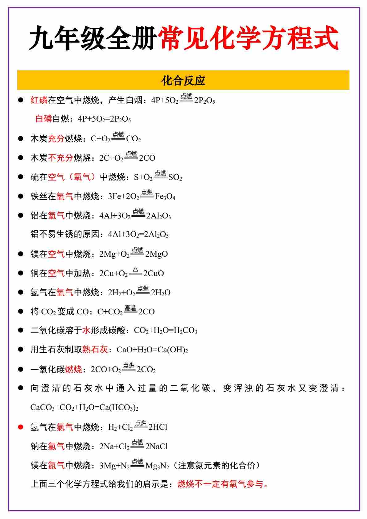 15九年级全册化学方程式