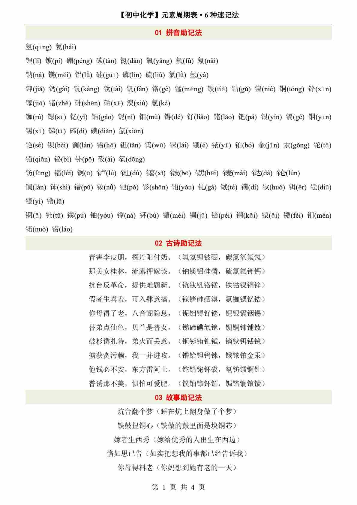 11初中化学元素周期表6种速记法