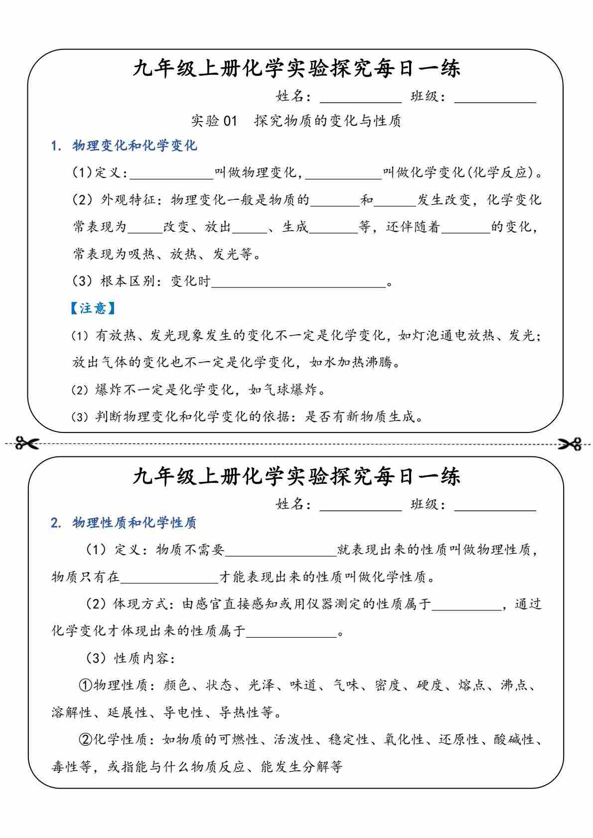 17九年级上册化学实验探究每日一练【空白】