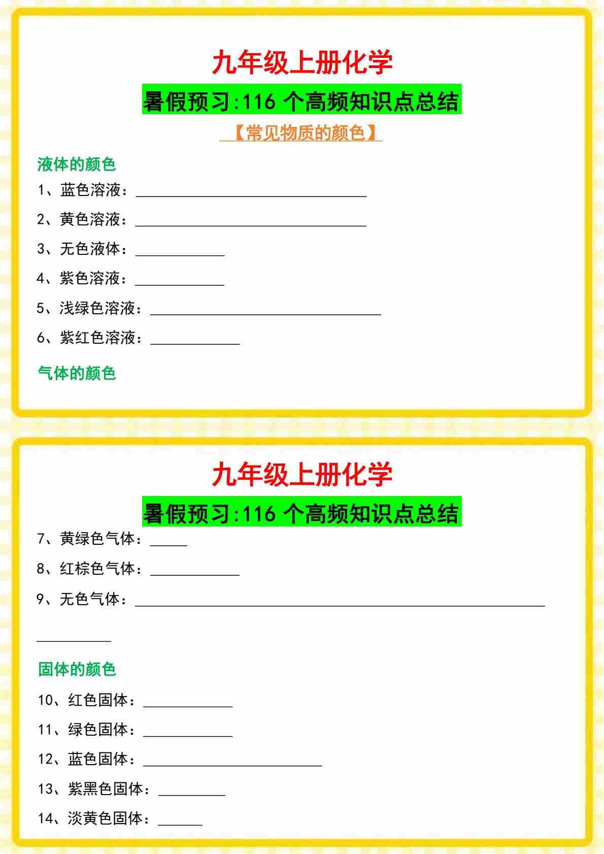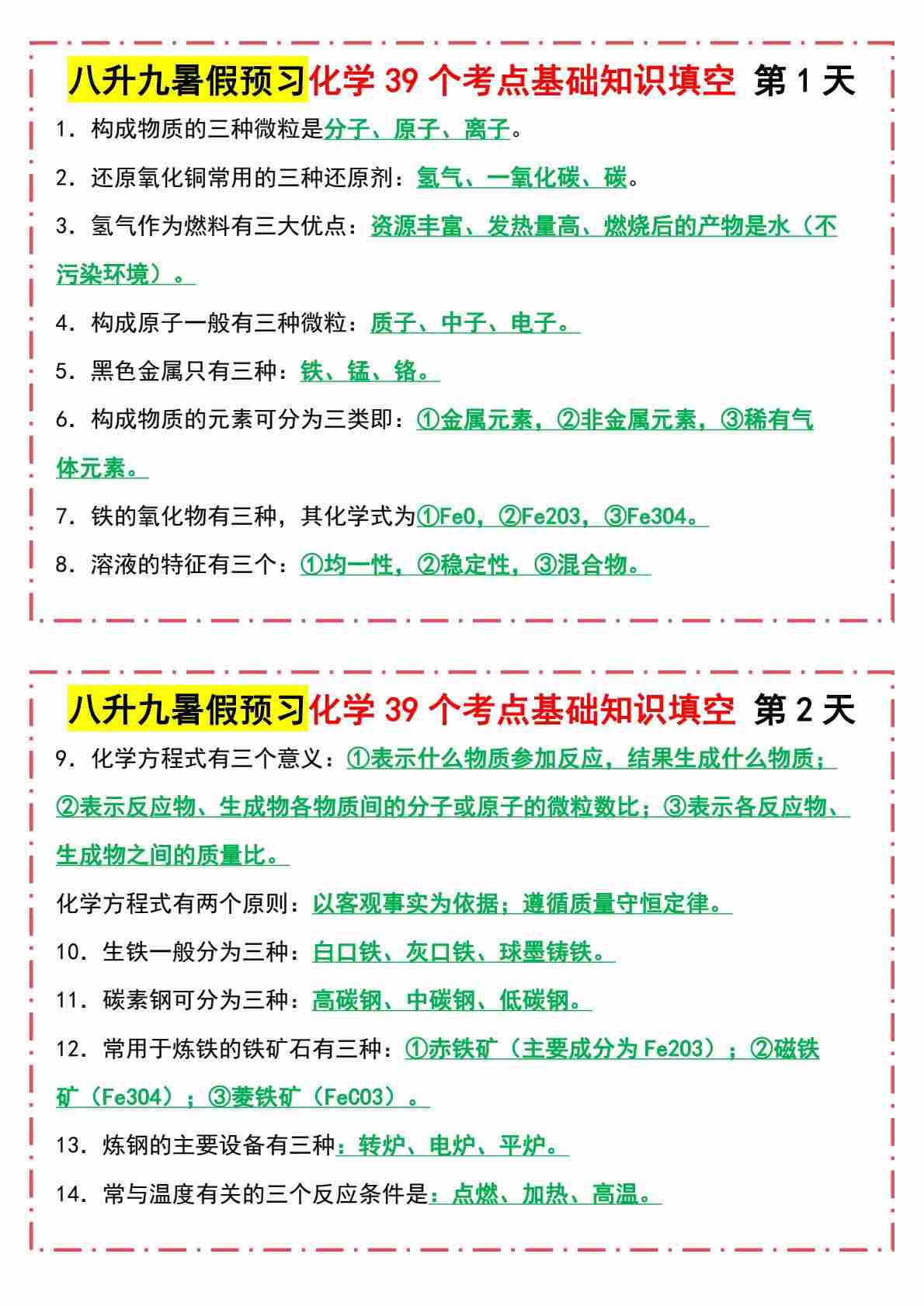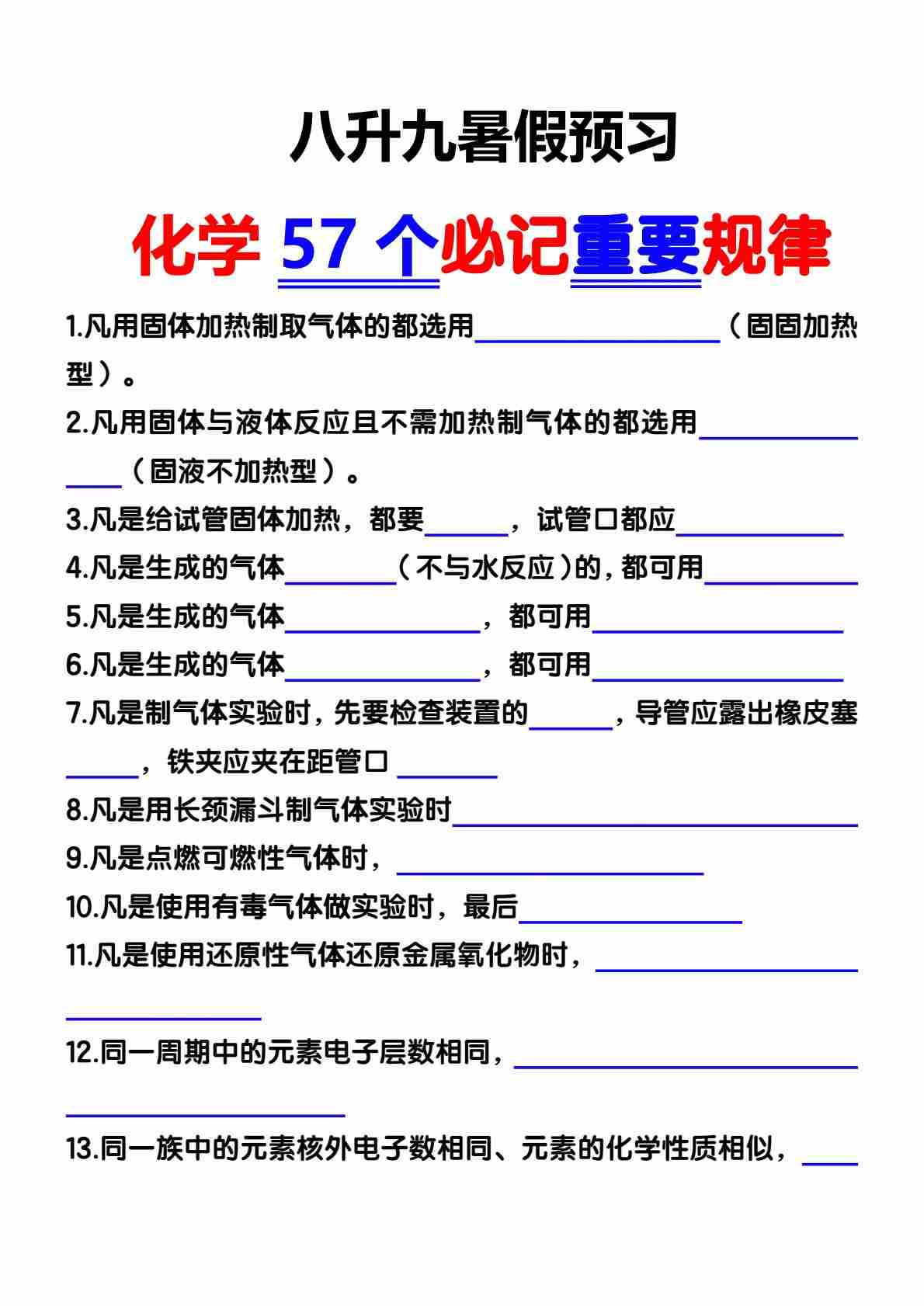 8八升九暑假预习化学57个必记重要规律默写版