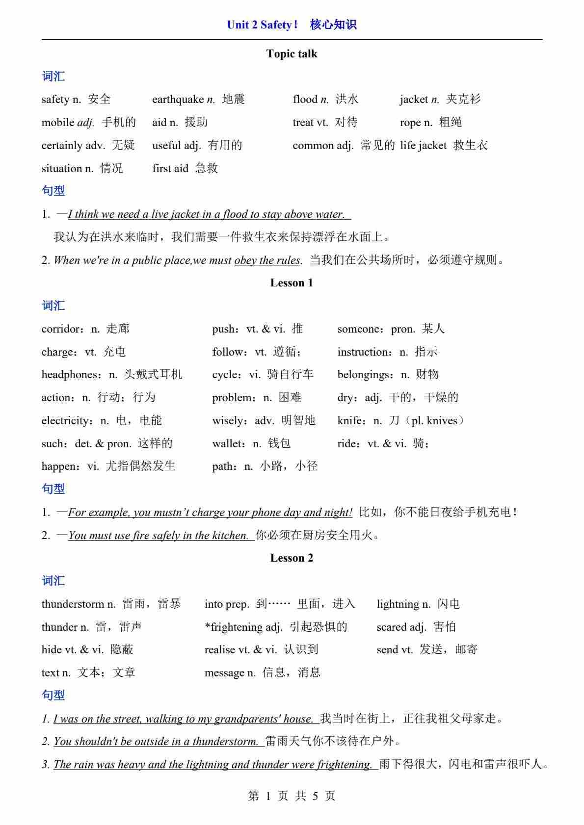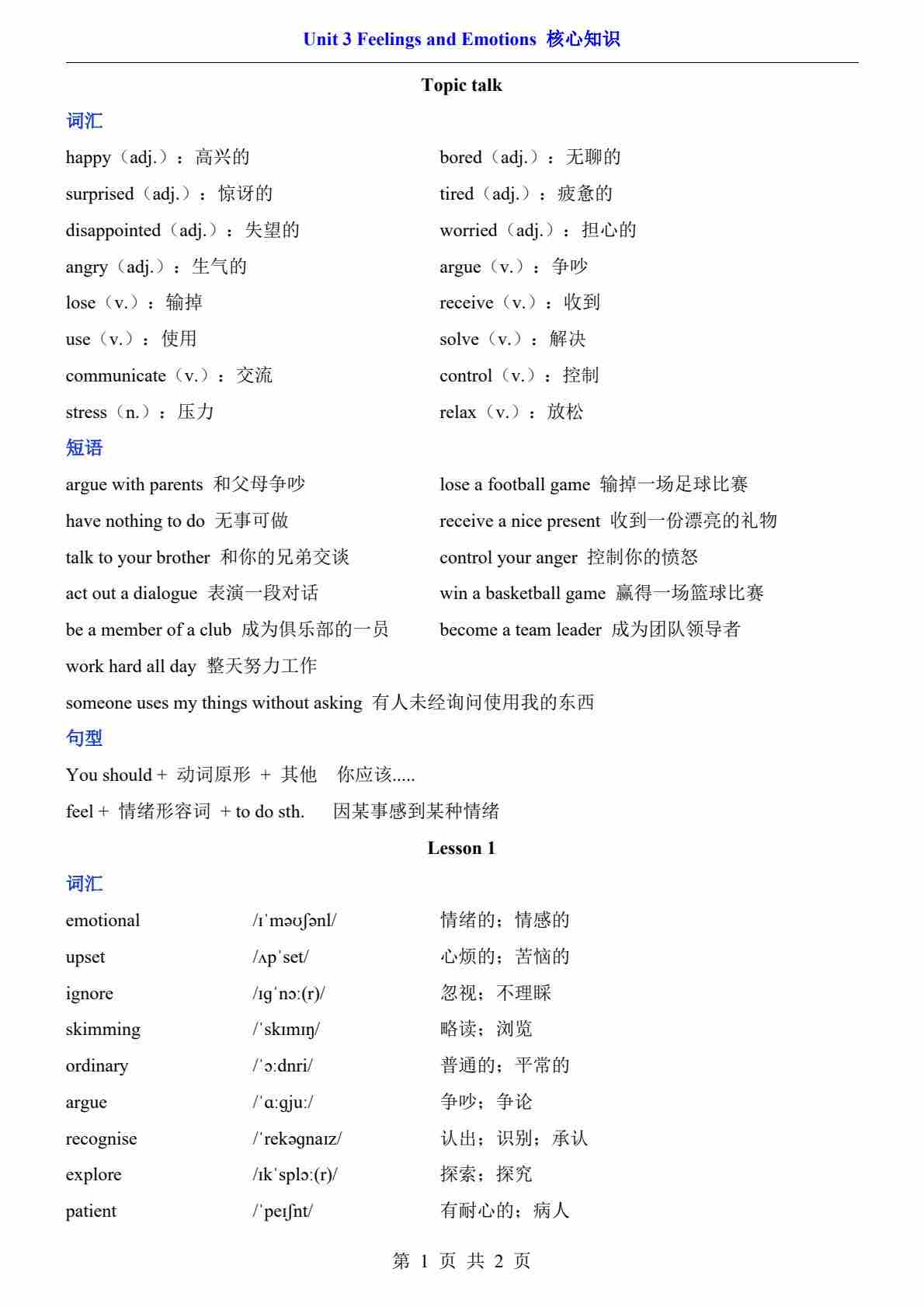 Unit 2(核心知识)--北师版八上英语