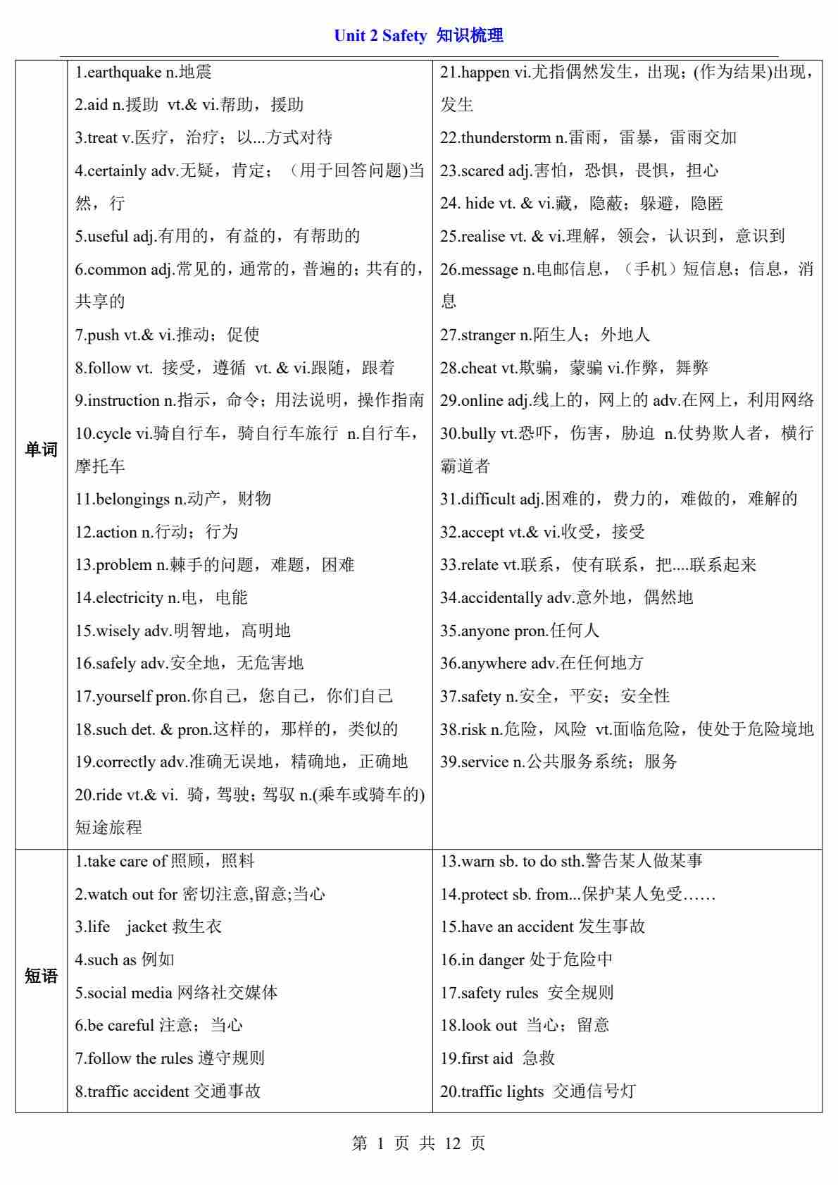 Unit 2(知识梳理)--北师版八上英语
