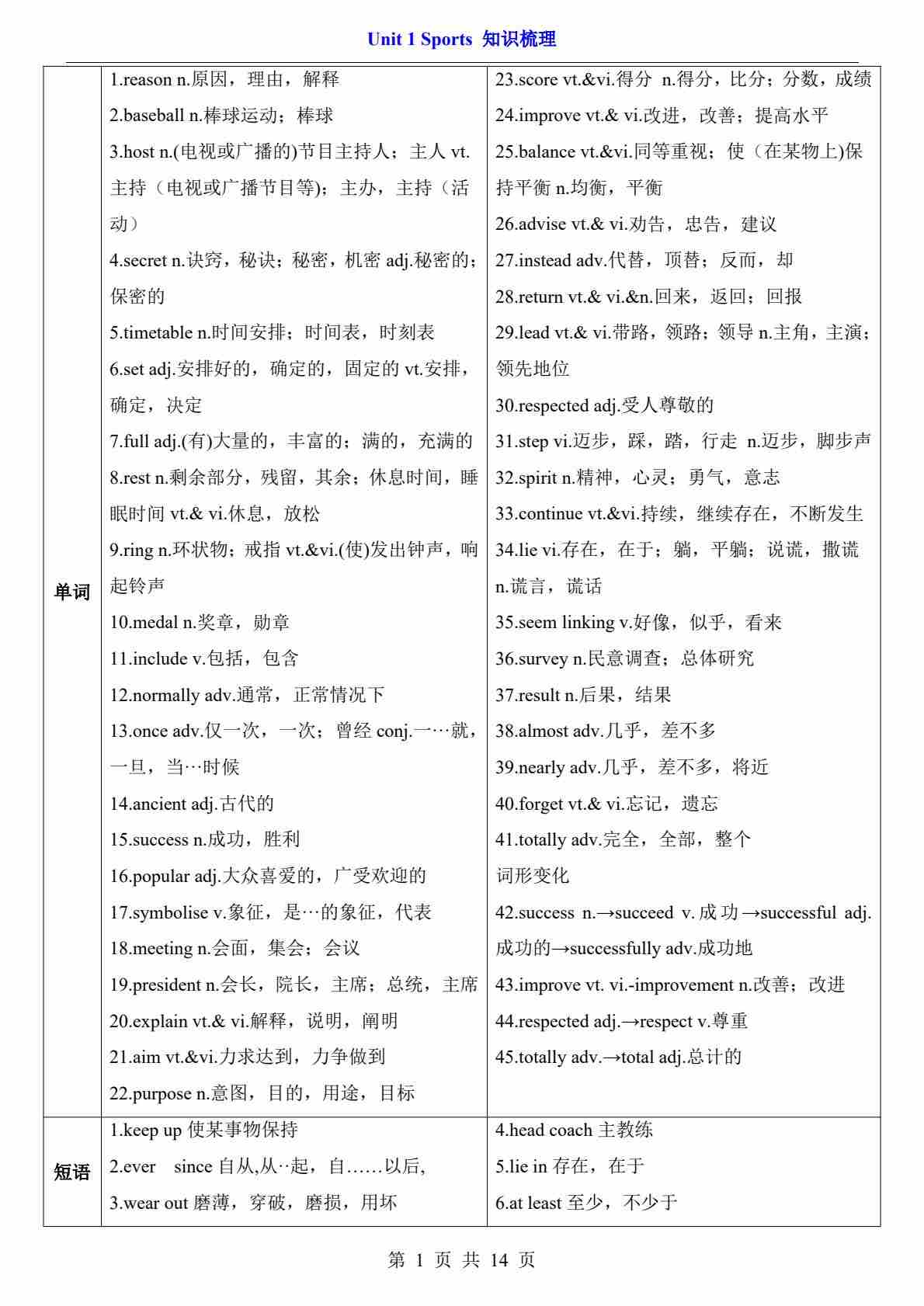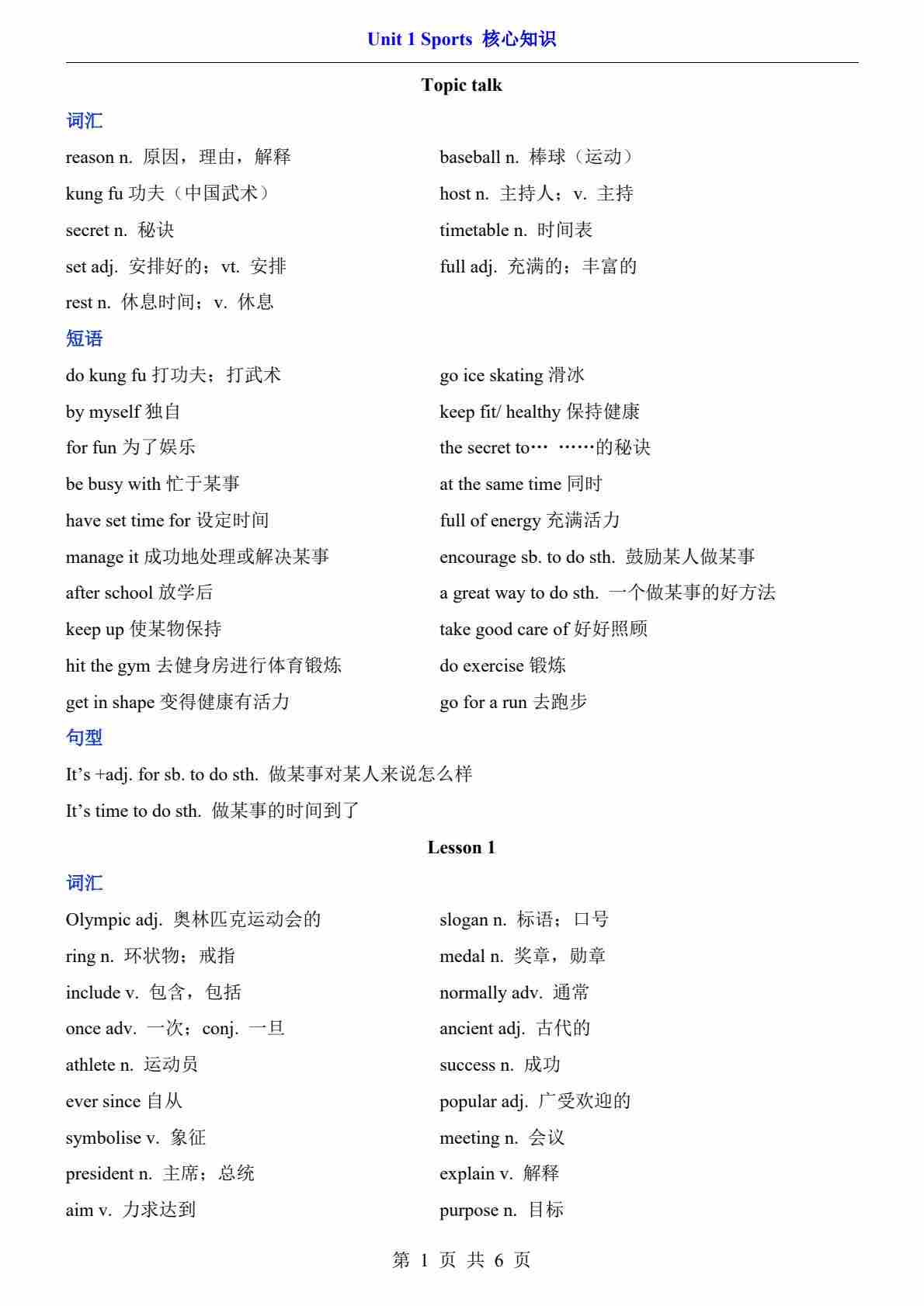 Unit 1(核心知识)--北师版八上英语
