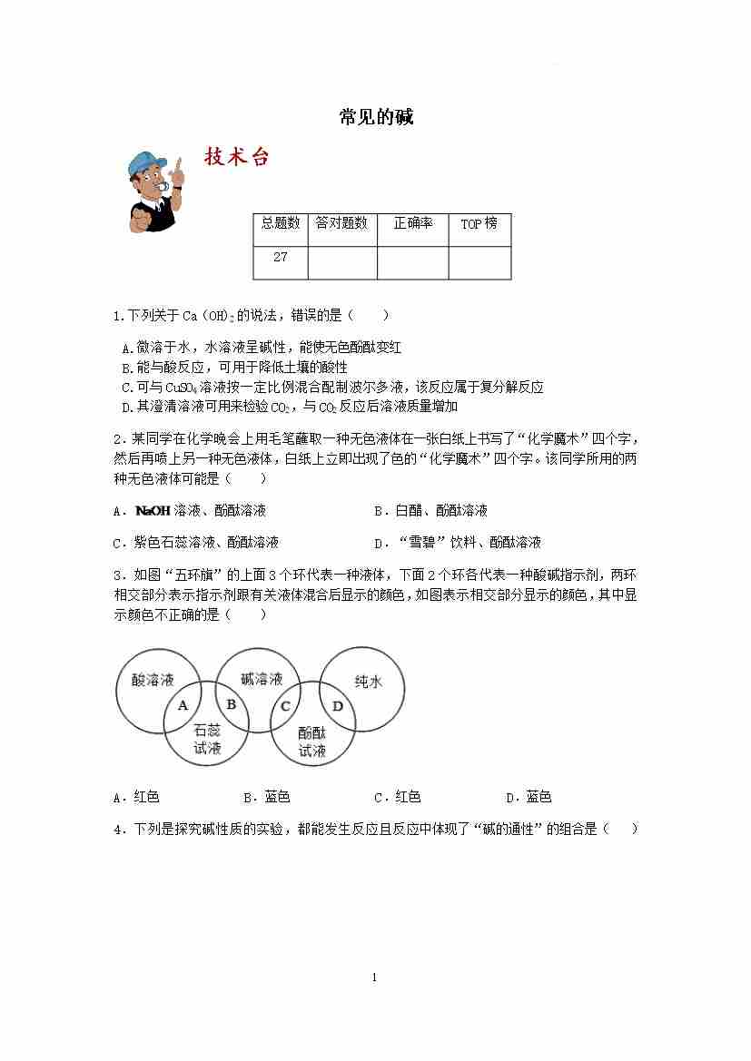 【期末冲刺】 点过关训练:常见的碱