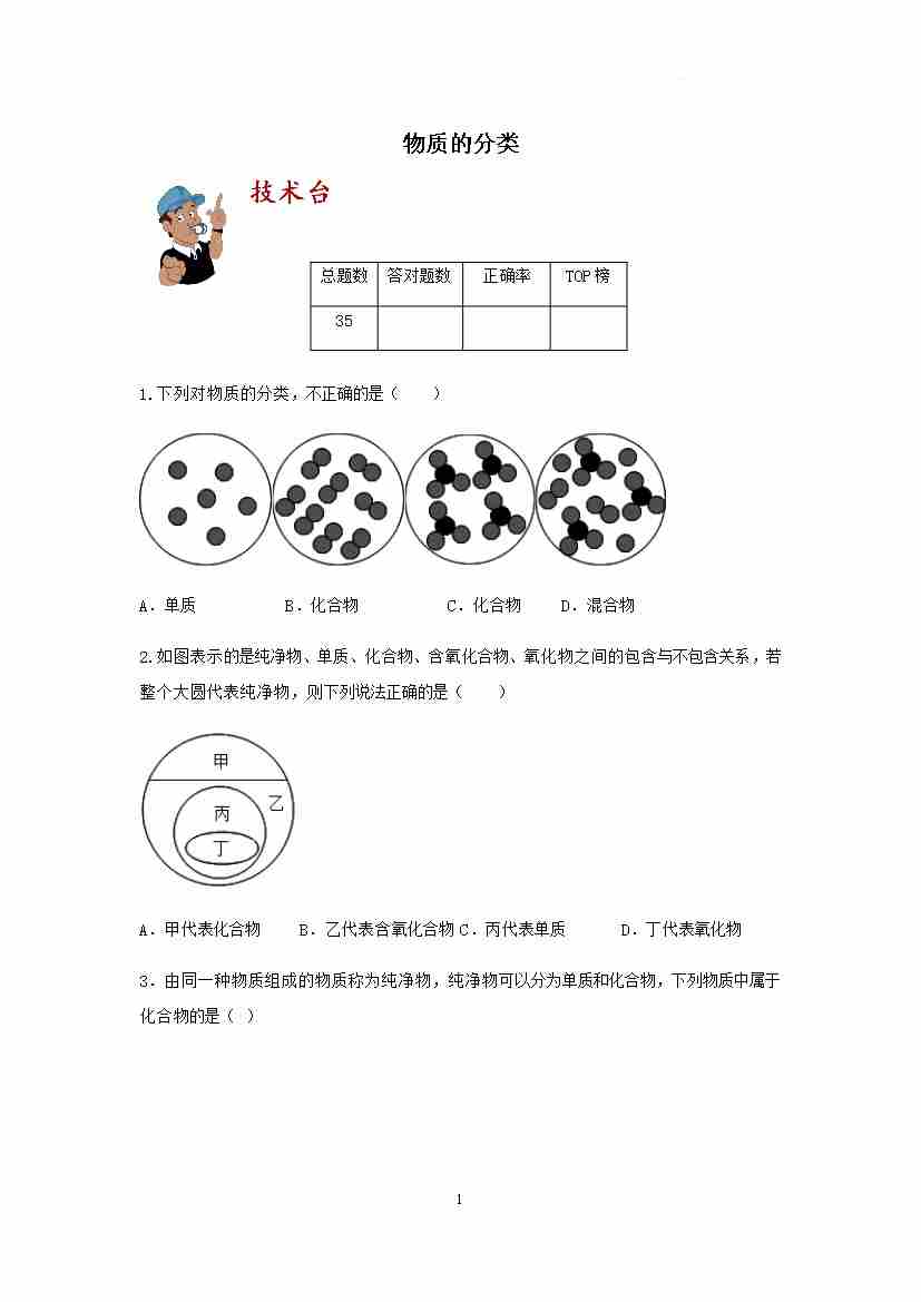 【期末冲刺】 考点过关训练:物质的分类