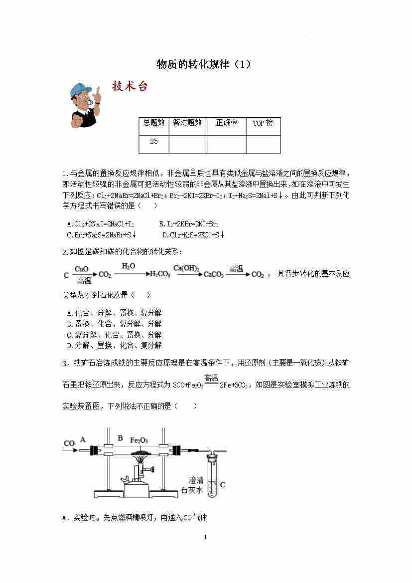 【期末冲刺】 考点过关训练:物质的转化规律