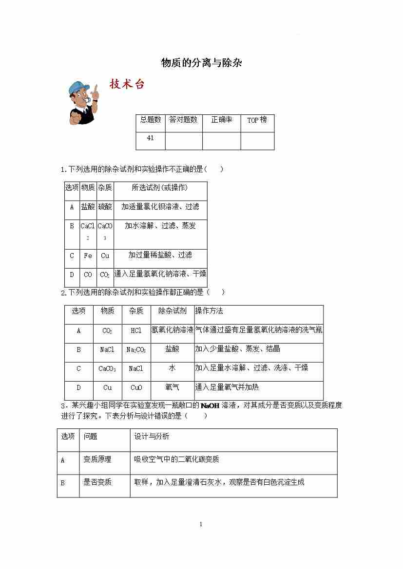 【期末冲刺】考点过关训练:物质的分离与除杂