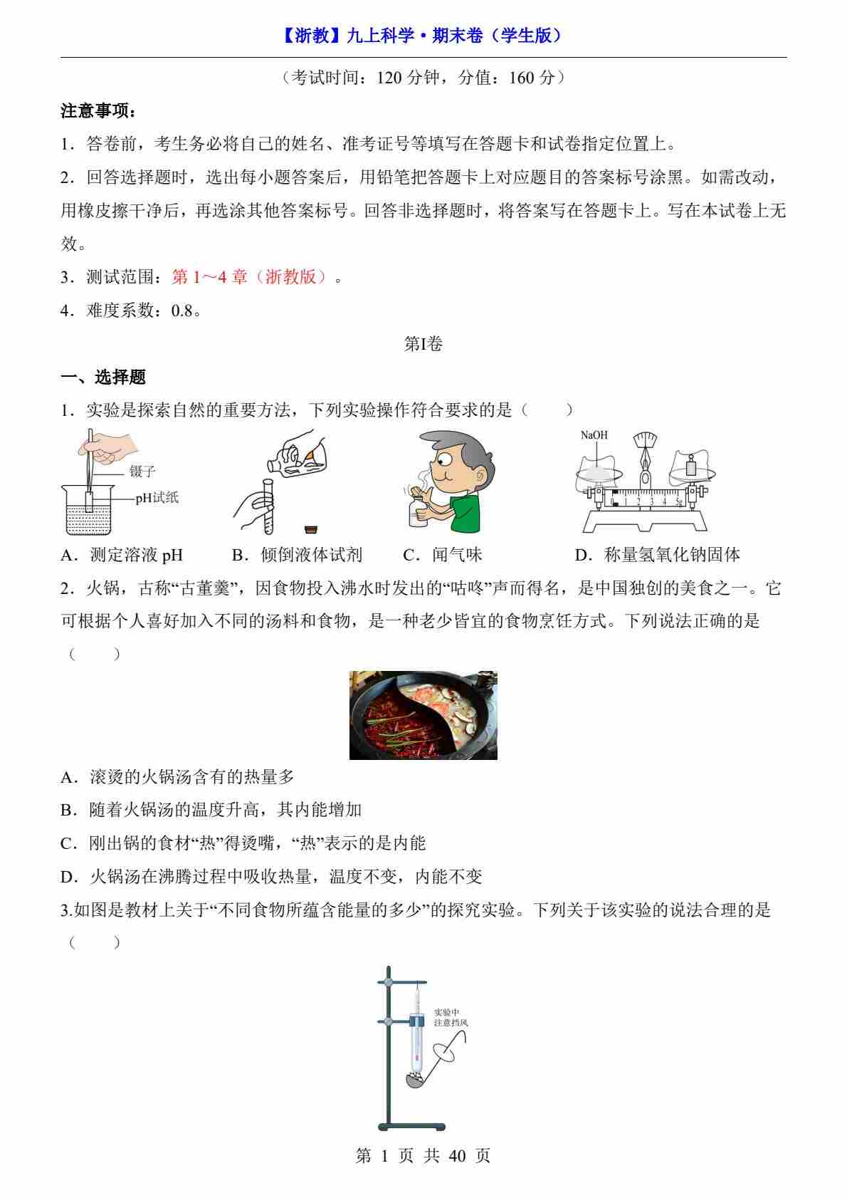 浙教版9年级科学上册【高清教材】