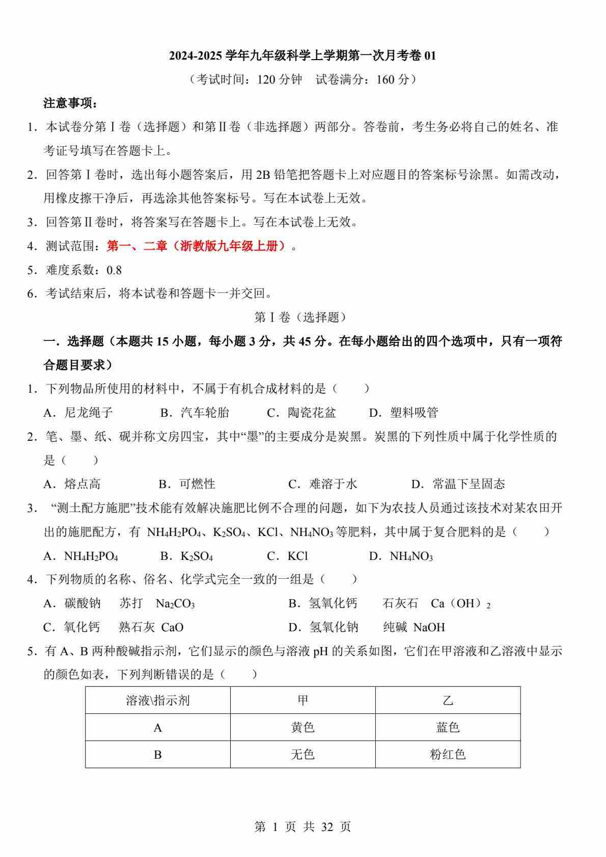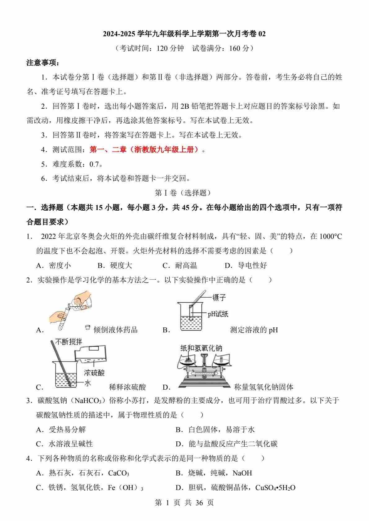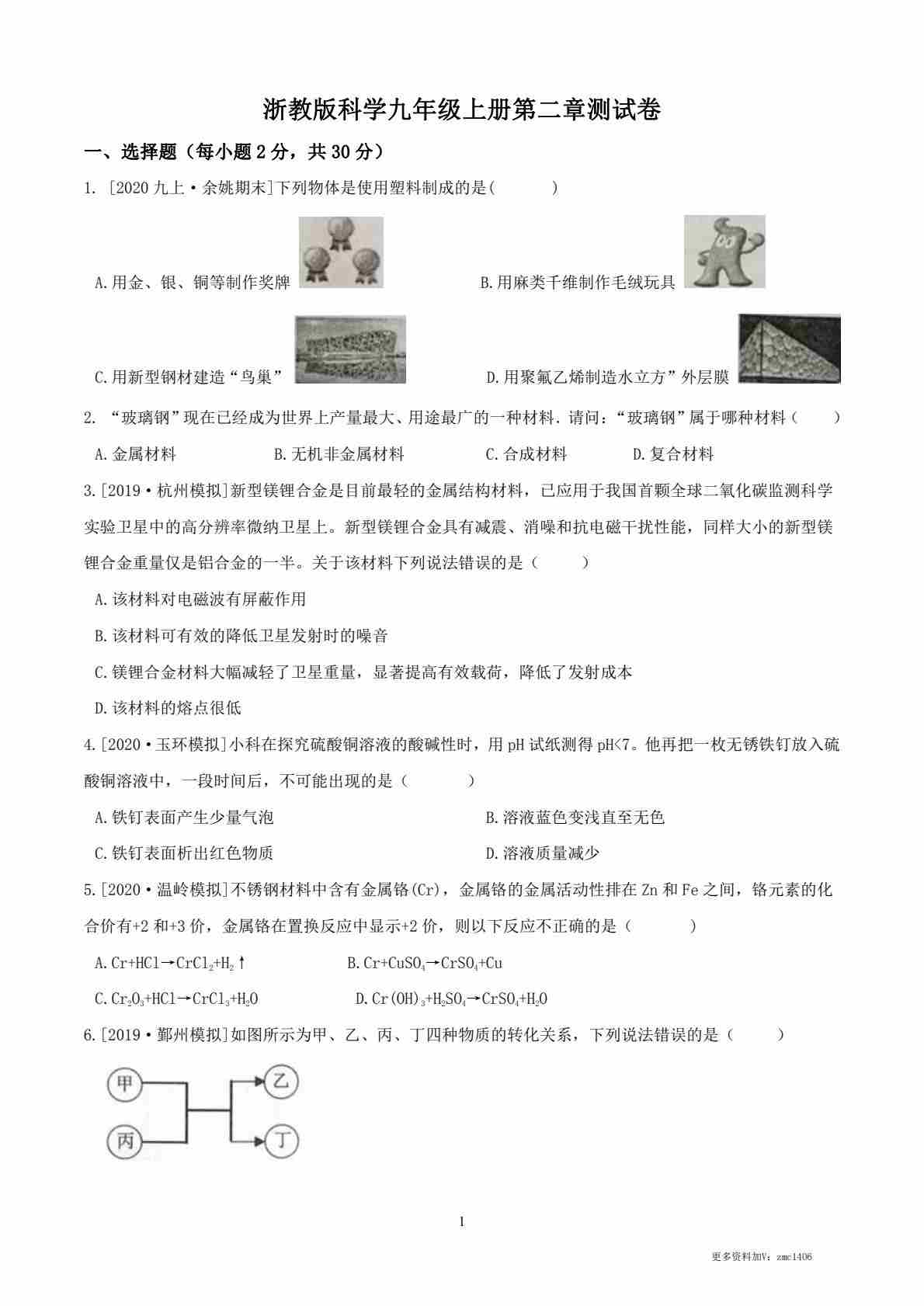 【浙教】9上科学第1次月考02【第1-2章】