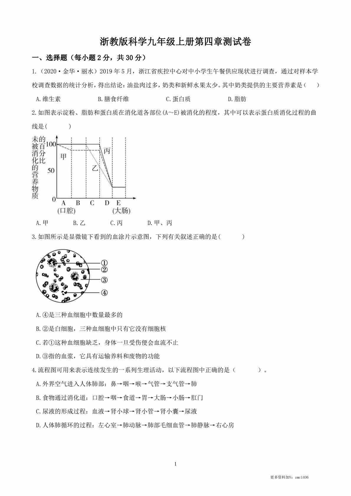 浙教版科学九年级上册第四章测试卷