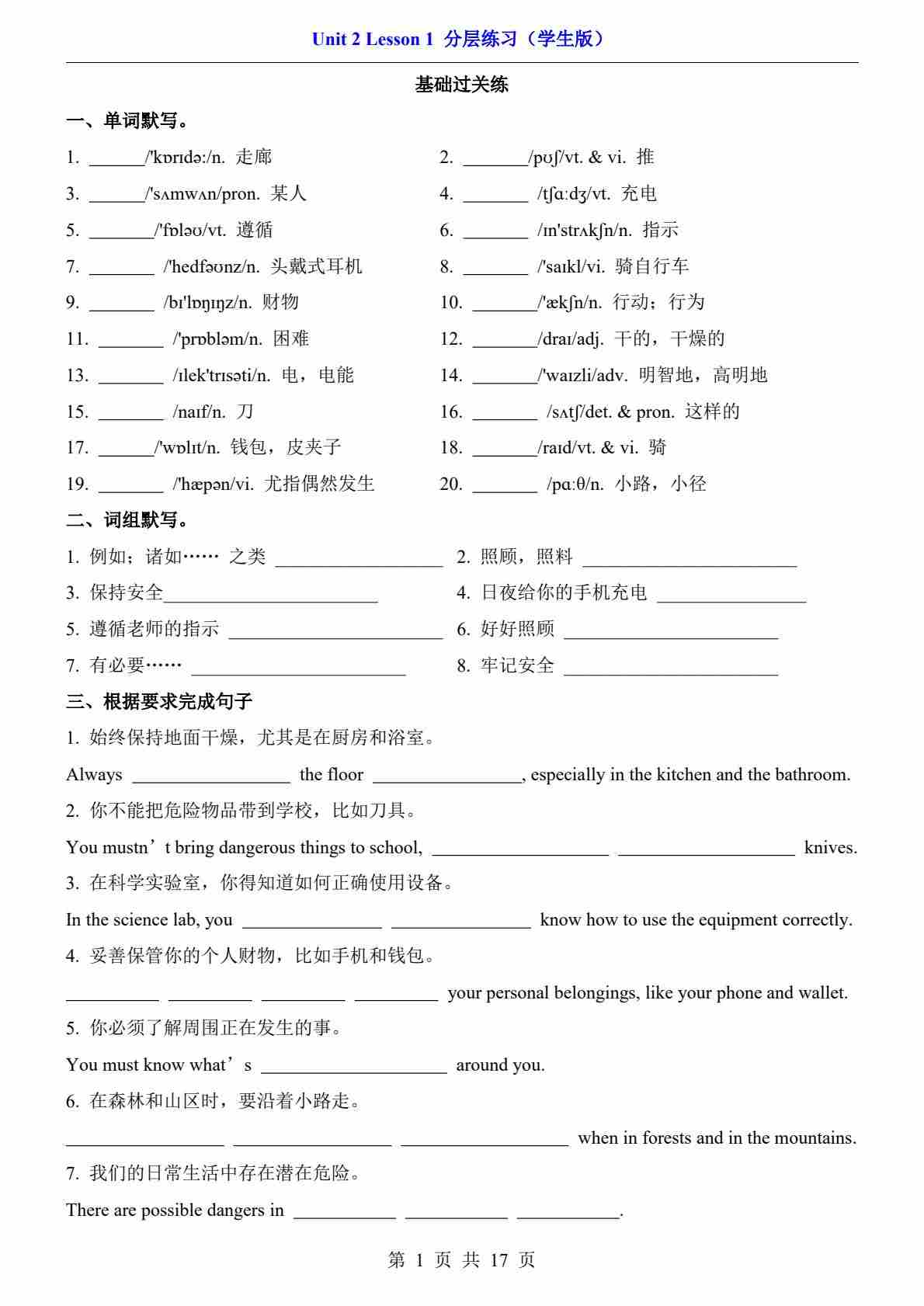 Unit 2 Lesson 1(分层练习)--北师版八上英语