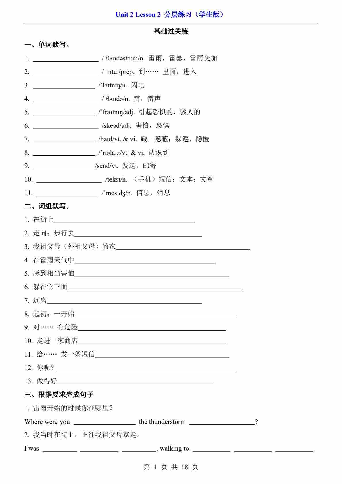 Unit 2 Lesson 2(分层练习)--北师版八上英语