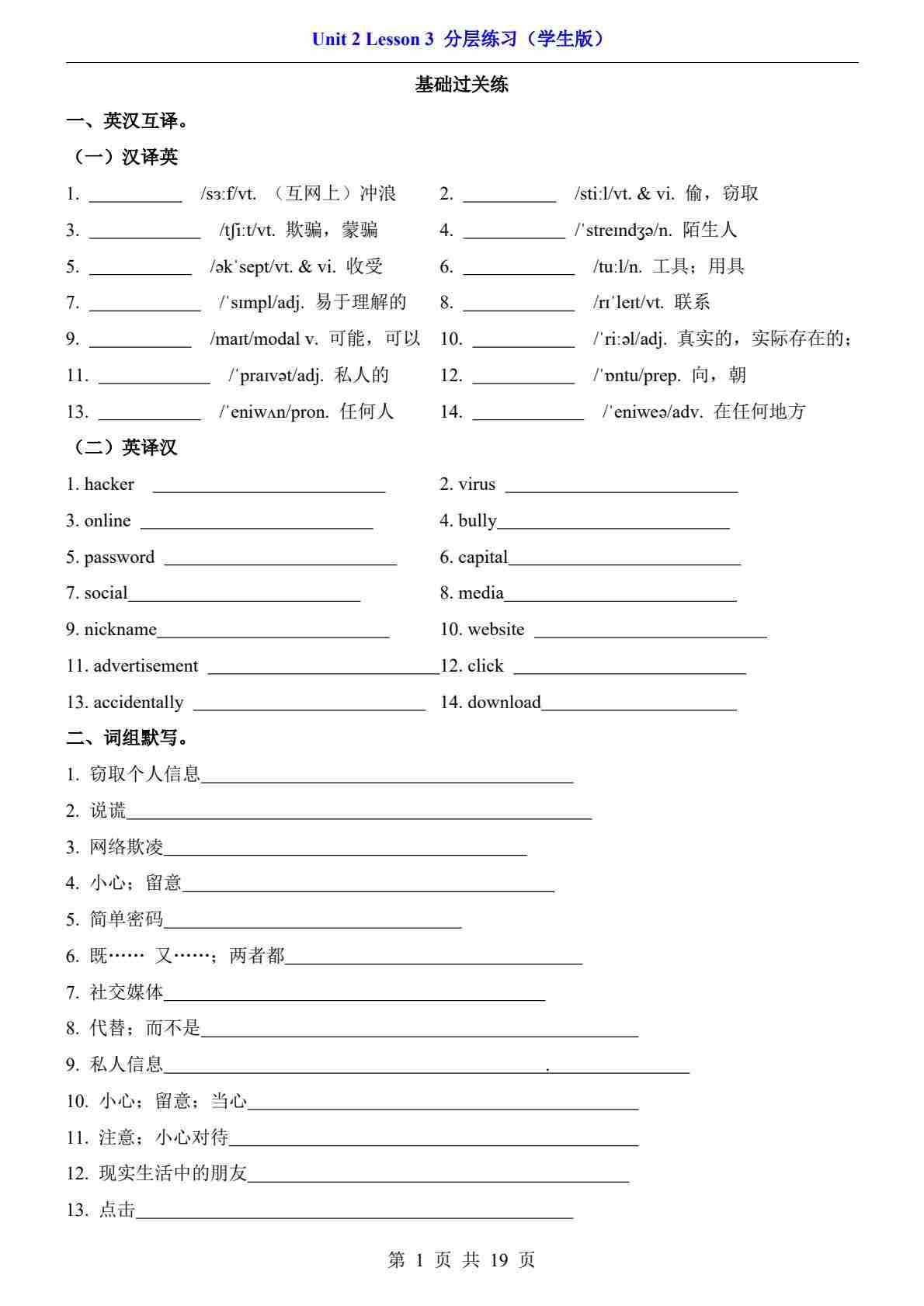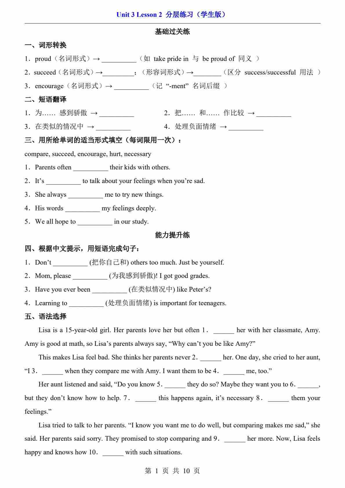 Unit 2 Lesson 3(分层练习)--北师版八上英语