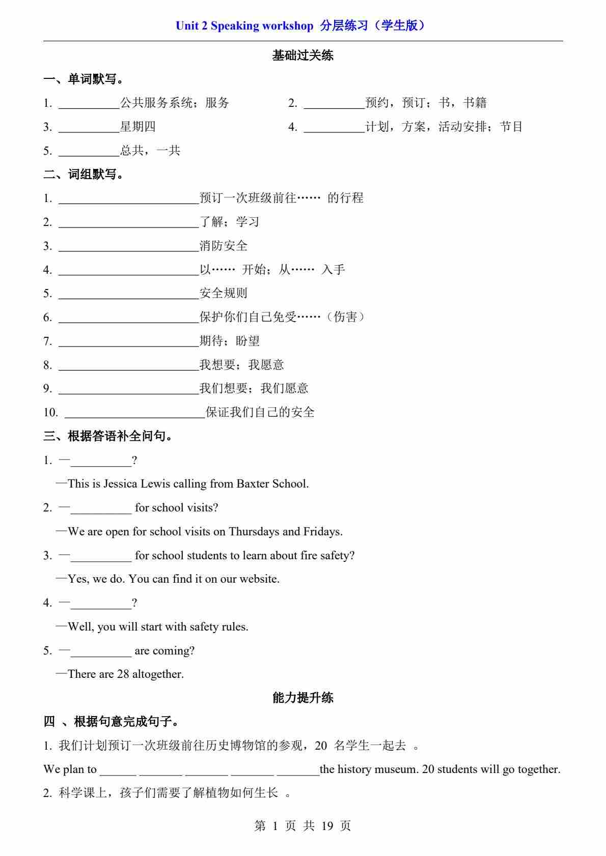 Unit 2 Speaking workshop(分层练习)--北师版八上英语