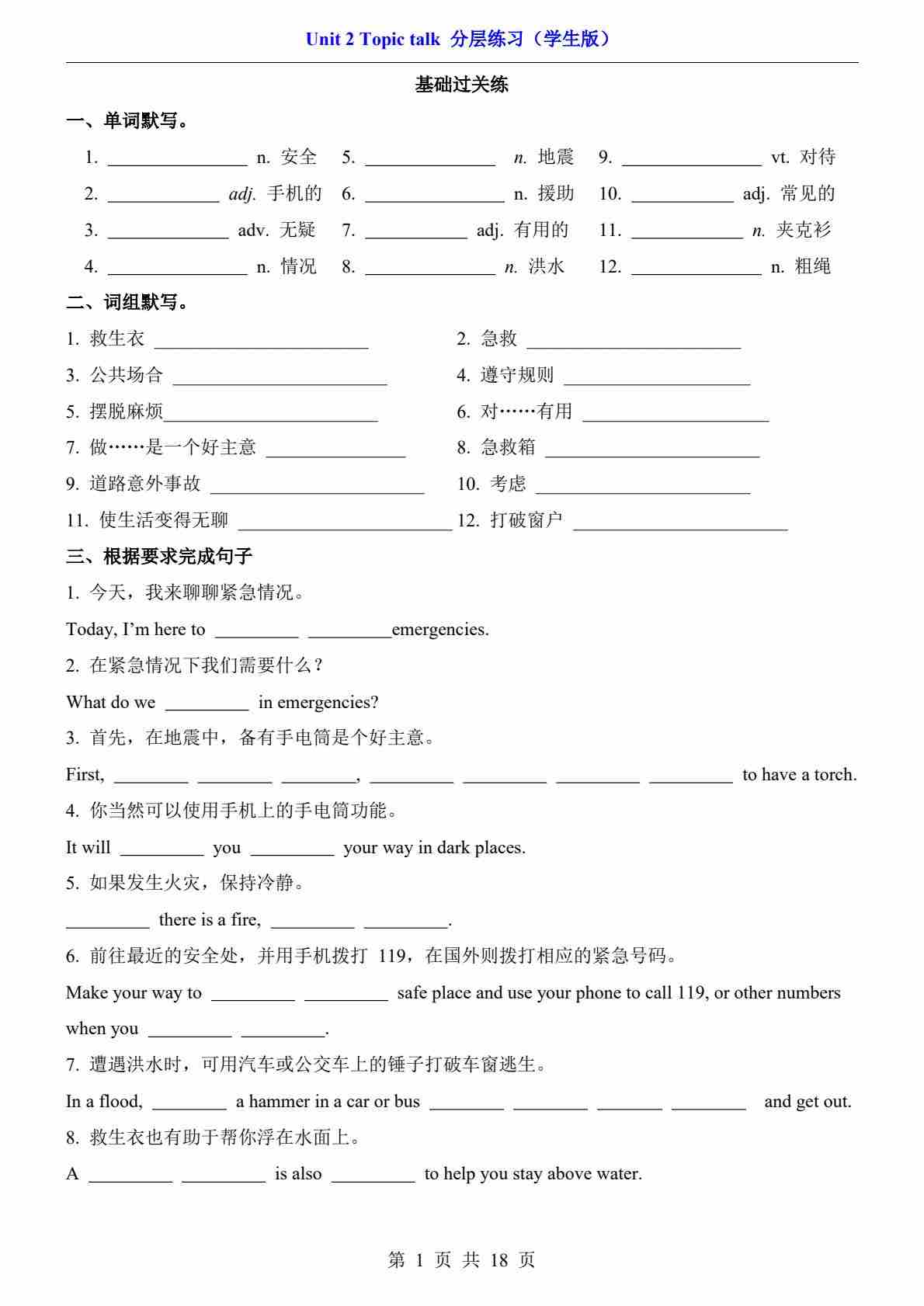 Unit 2 Topic talk(分层练习)--北师版八上英语