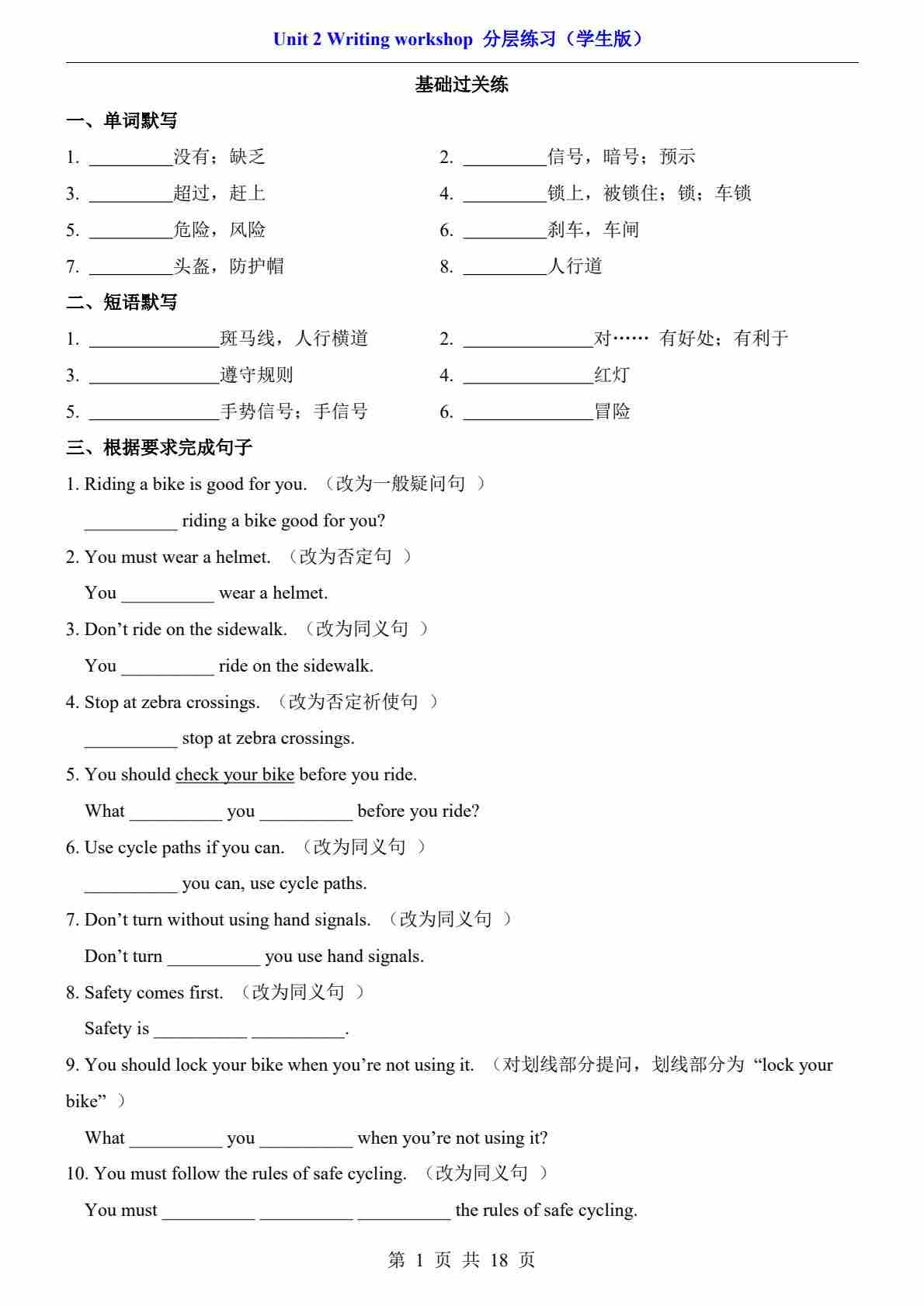 Unit 2 Writing workshop(分层练习)--北师版八上英语
