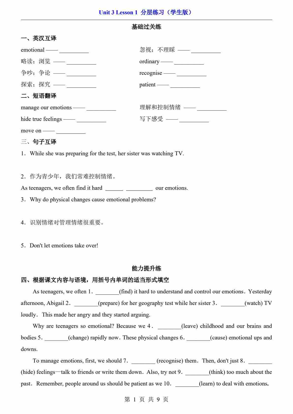 Unit 3 Lesson 1(分层练习)--北师版八上英语