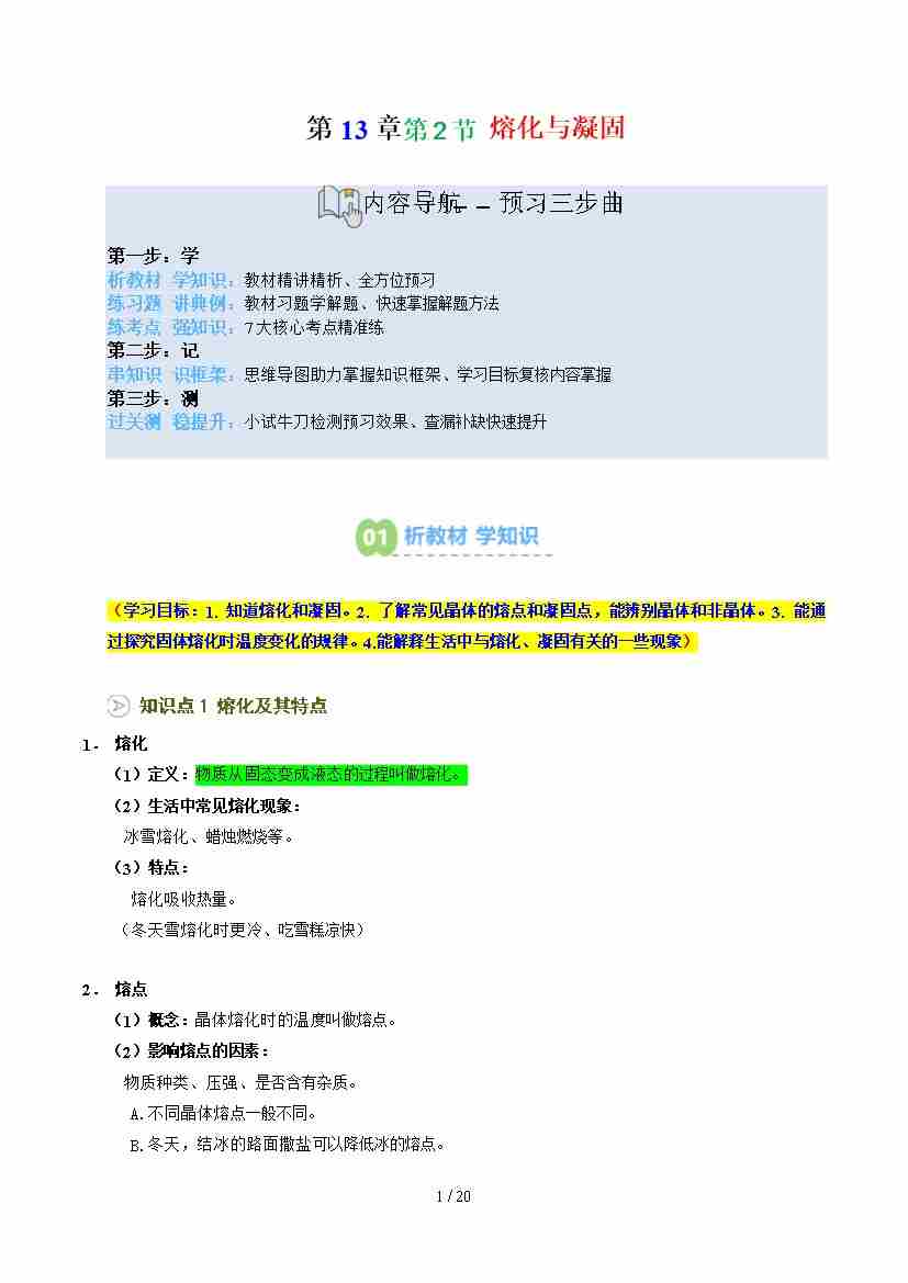 第2部分-预习-第08讲 熔化与凝固【学生版】2025年新九年级物理暑假衔接讲义(沪科版)