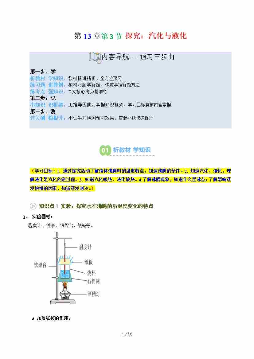 第2部分-预习-第09讲 探究: 汽化与液化【学生版】2025年新九年级物理暑假衔接讲义(沪科版)