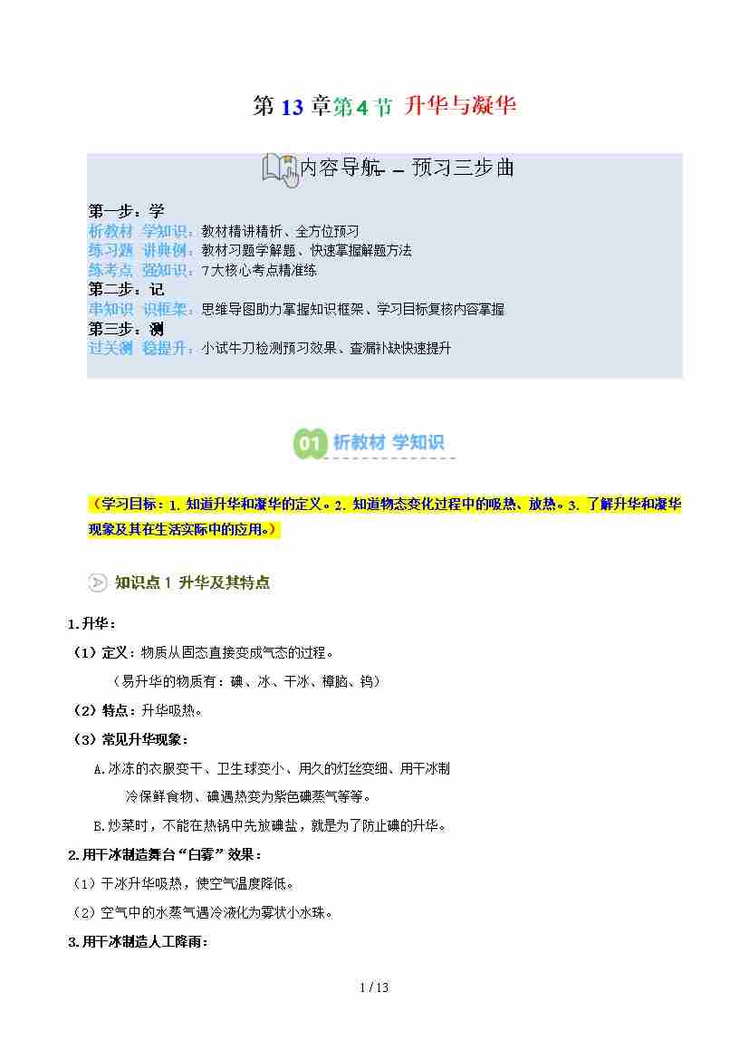 第2部分-预习-第10讲 升华与凝华【学生版】2025年新九年级物理暑假衔接讲义(沪科版)