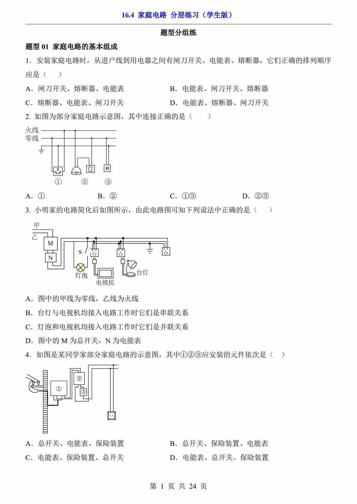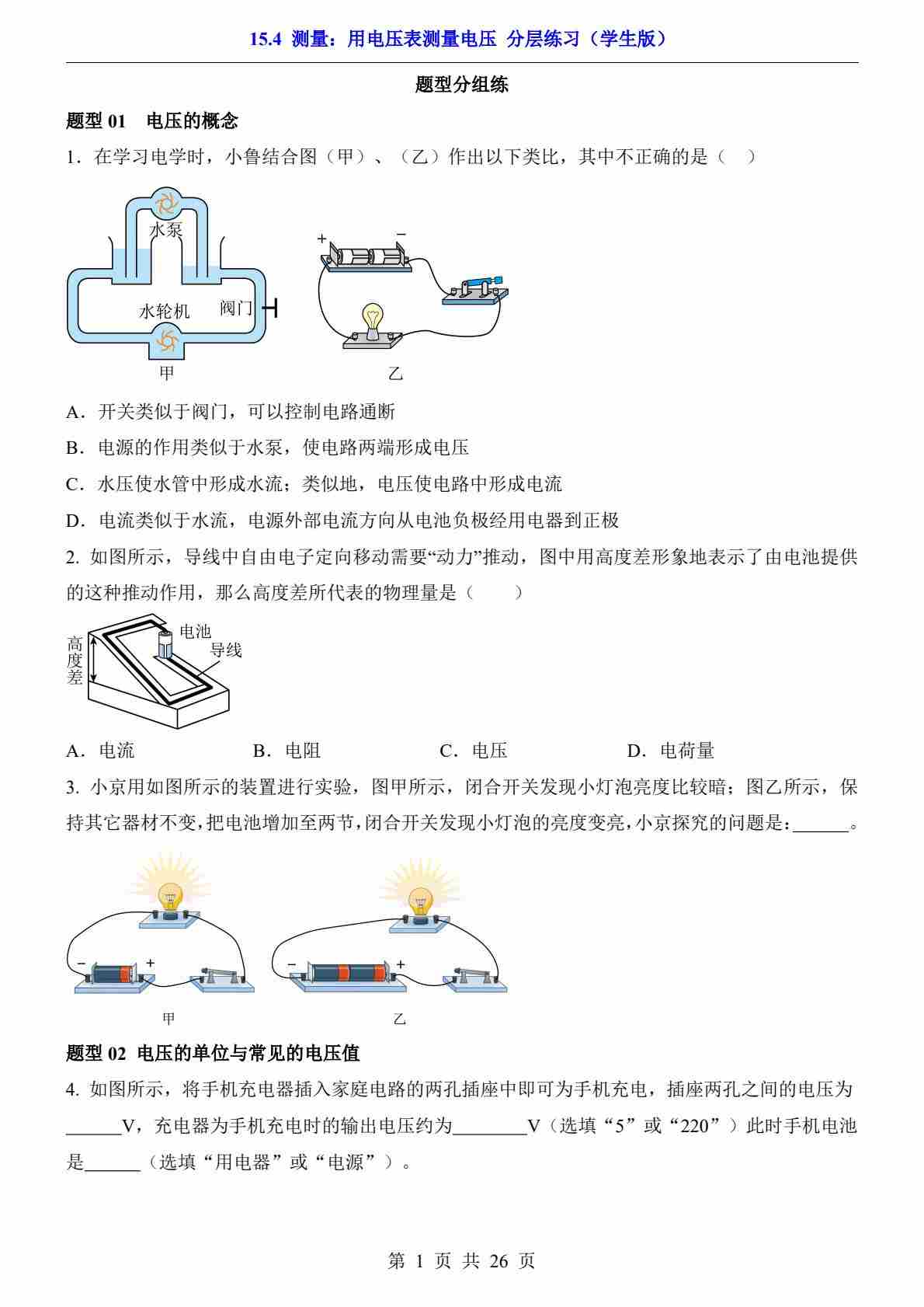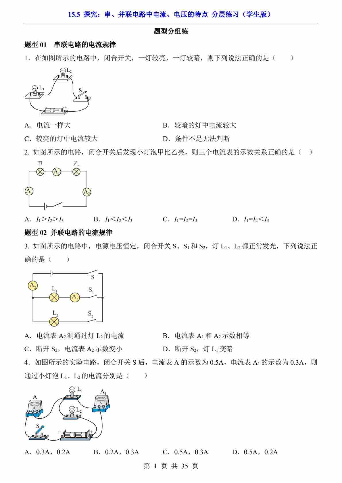 15.5 探究:串、并联电路中电流、电压的特点(分层练习)