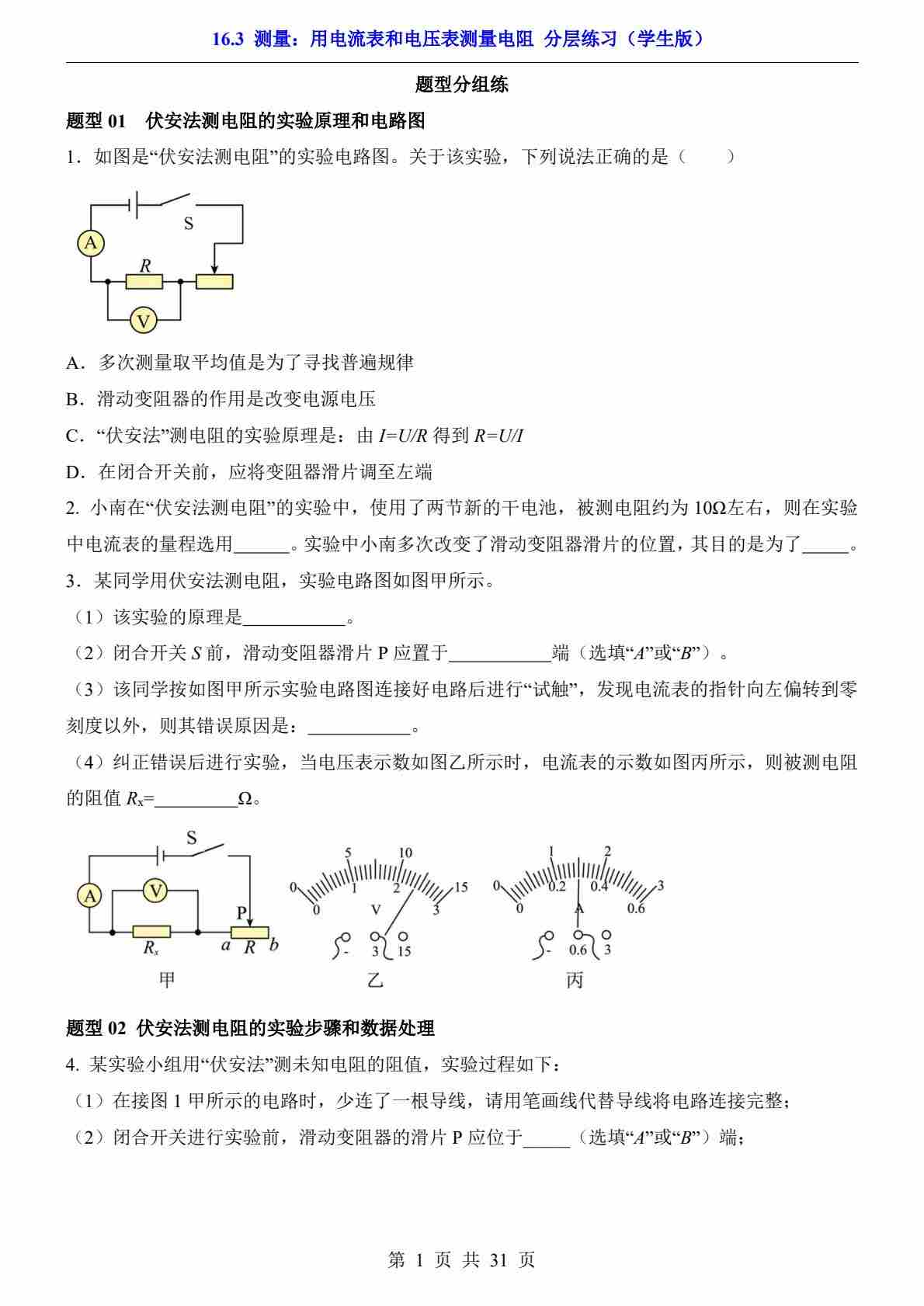 16.3 测量:用电流表和电压表测量电阻(分层练习)