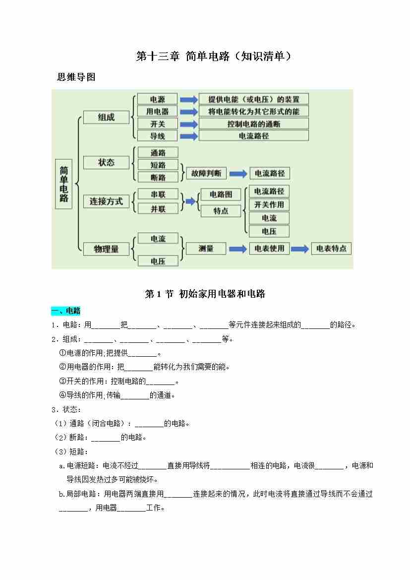 第十三章 简单电路(知识清单)(挖空版)