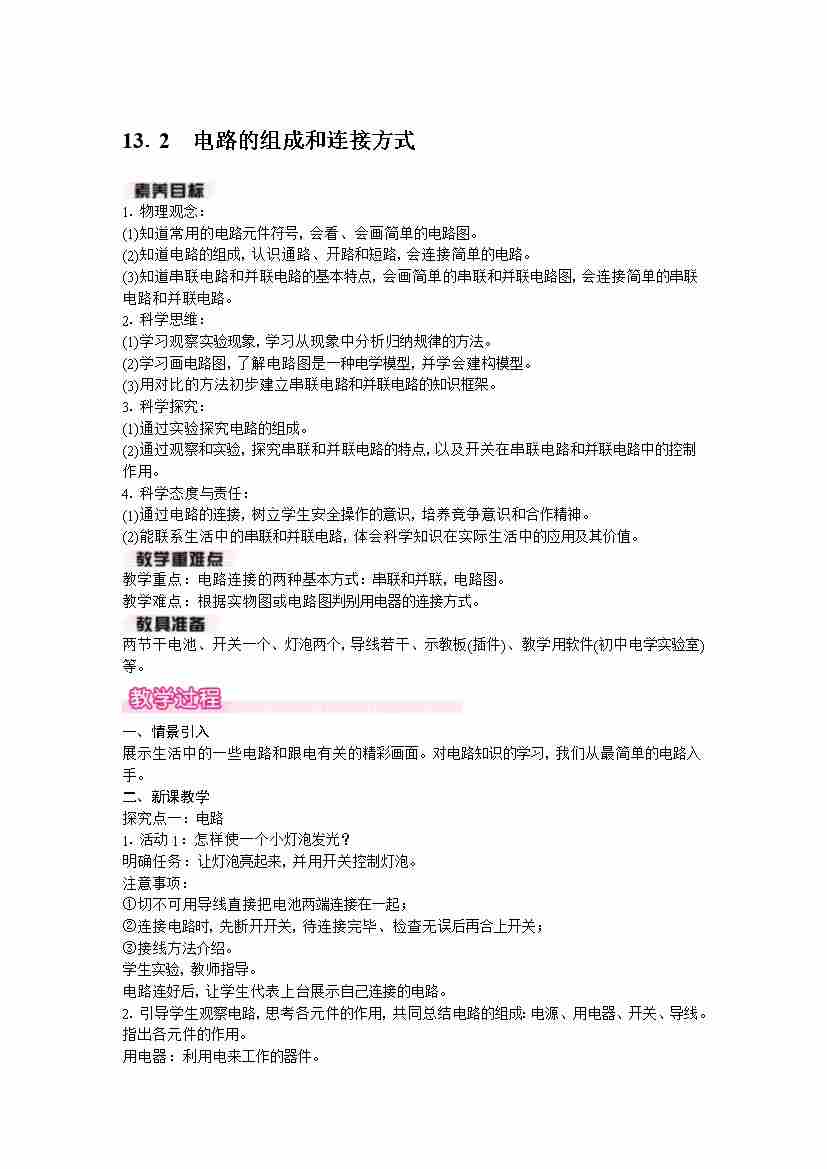 13.2 电路的组成和连接方式
