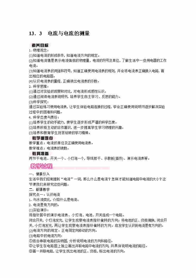 13.3 电流与电流的测量