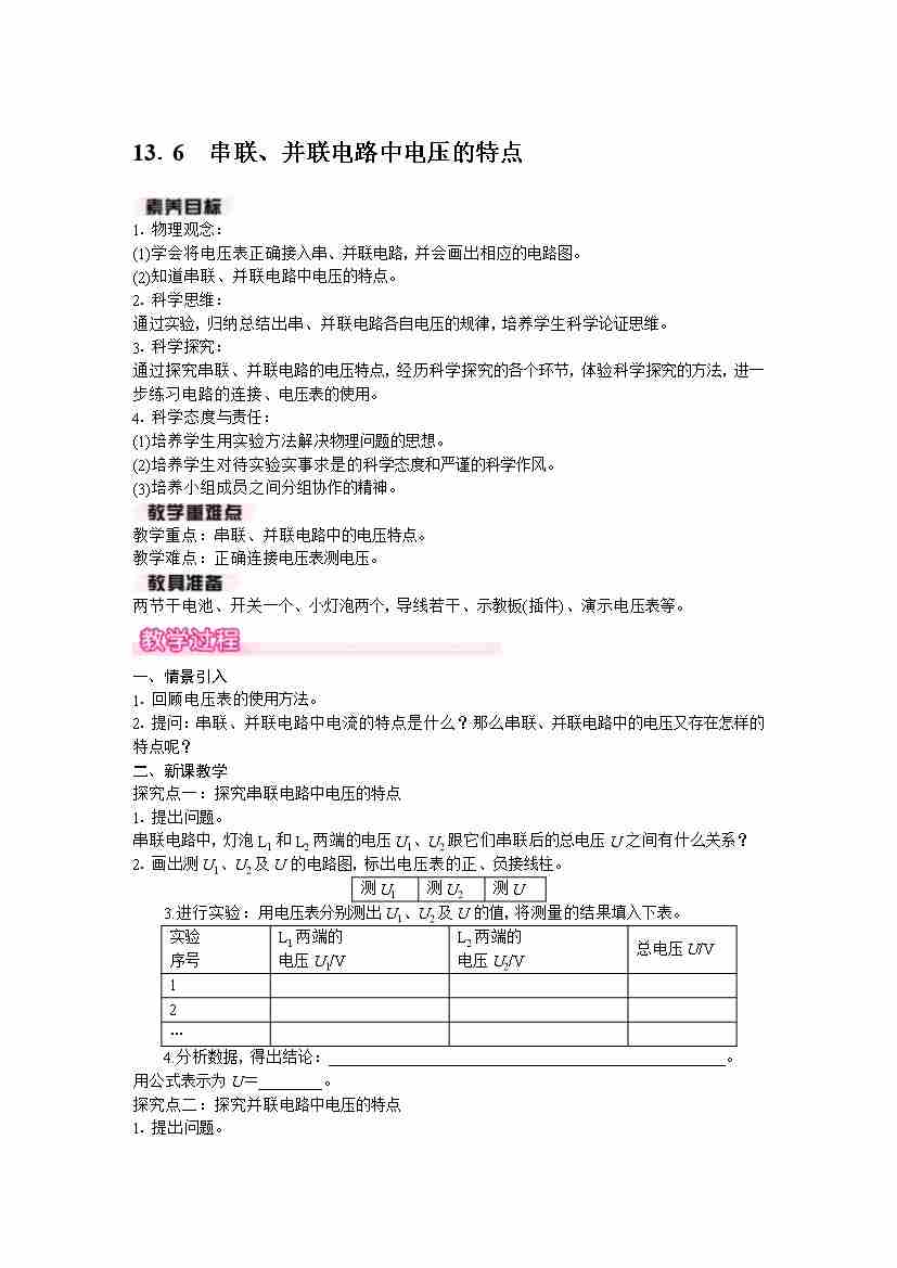 13.6 串联、并联电路中电压的特点