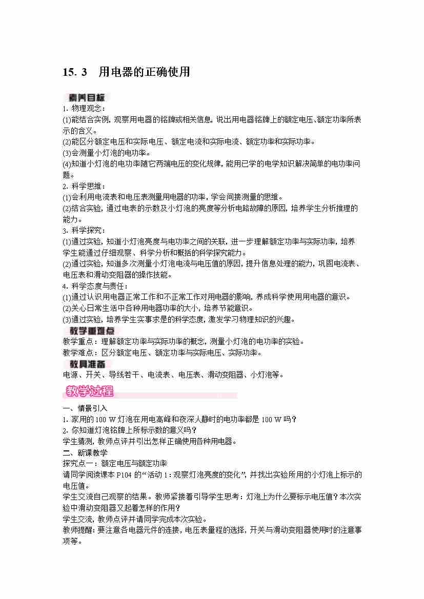 15.3 用电器的正确使用