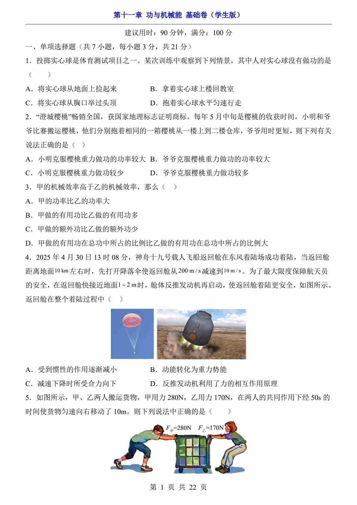 第11章 功与机械能(基础卷)