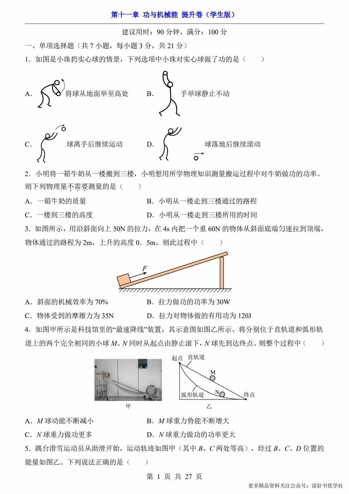 第11章 功与机械能(提升卷)