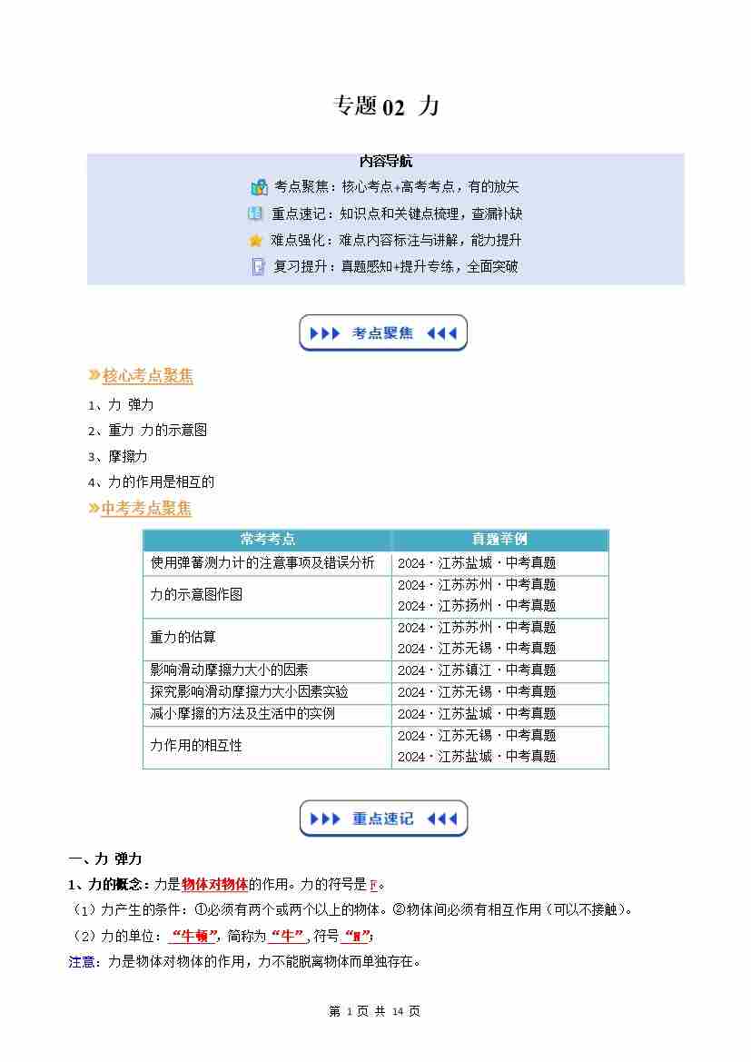 【苏科】专题02:力(复习)(原卷版)