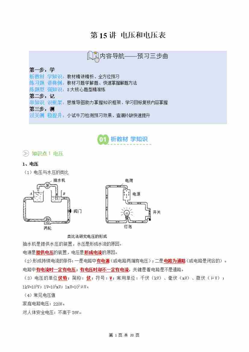 【苏科】第15讲:电压和电压表(预习)(解析版)