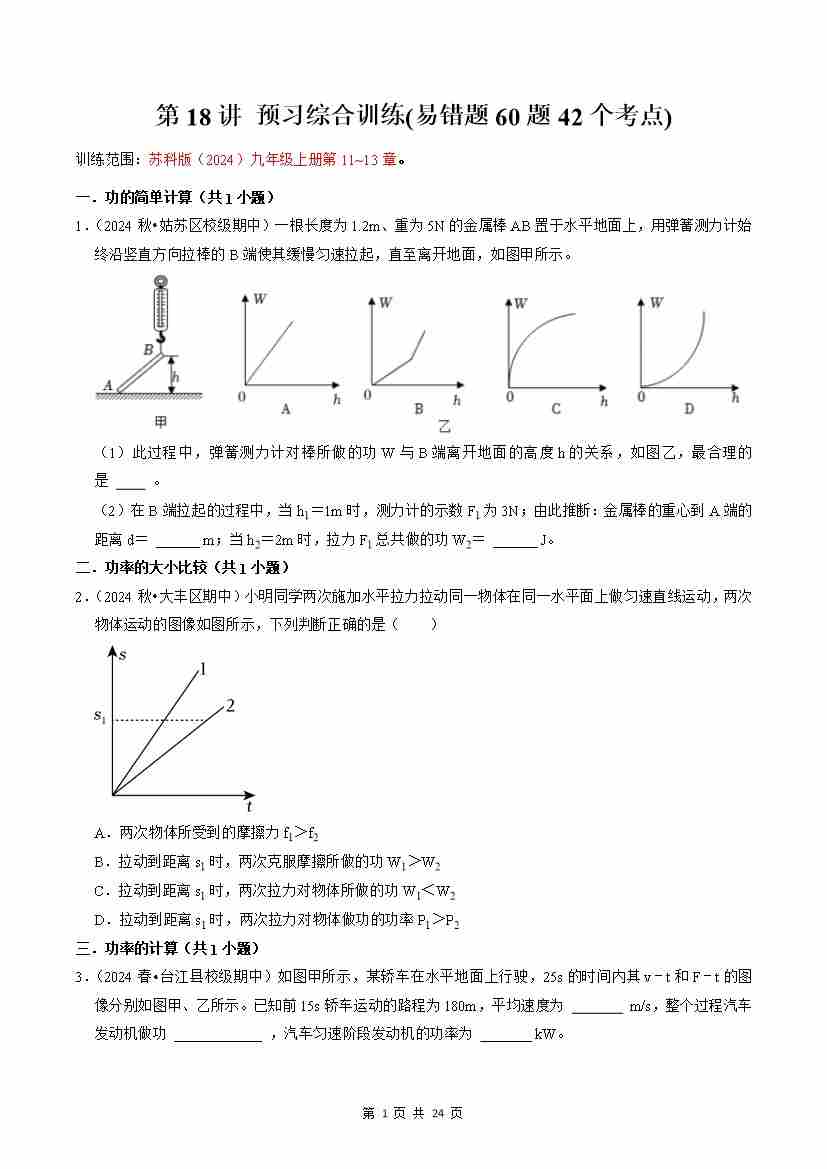【苏科】第18讲:预习综合训练(易错题60题42个考点)(预习)(原卷版)