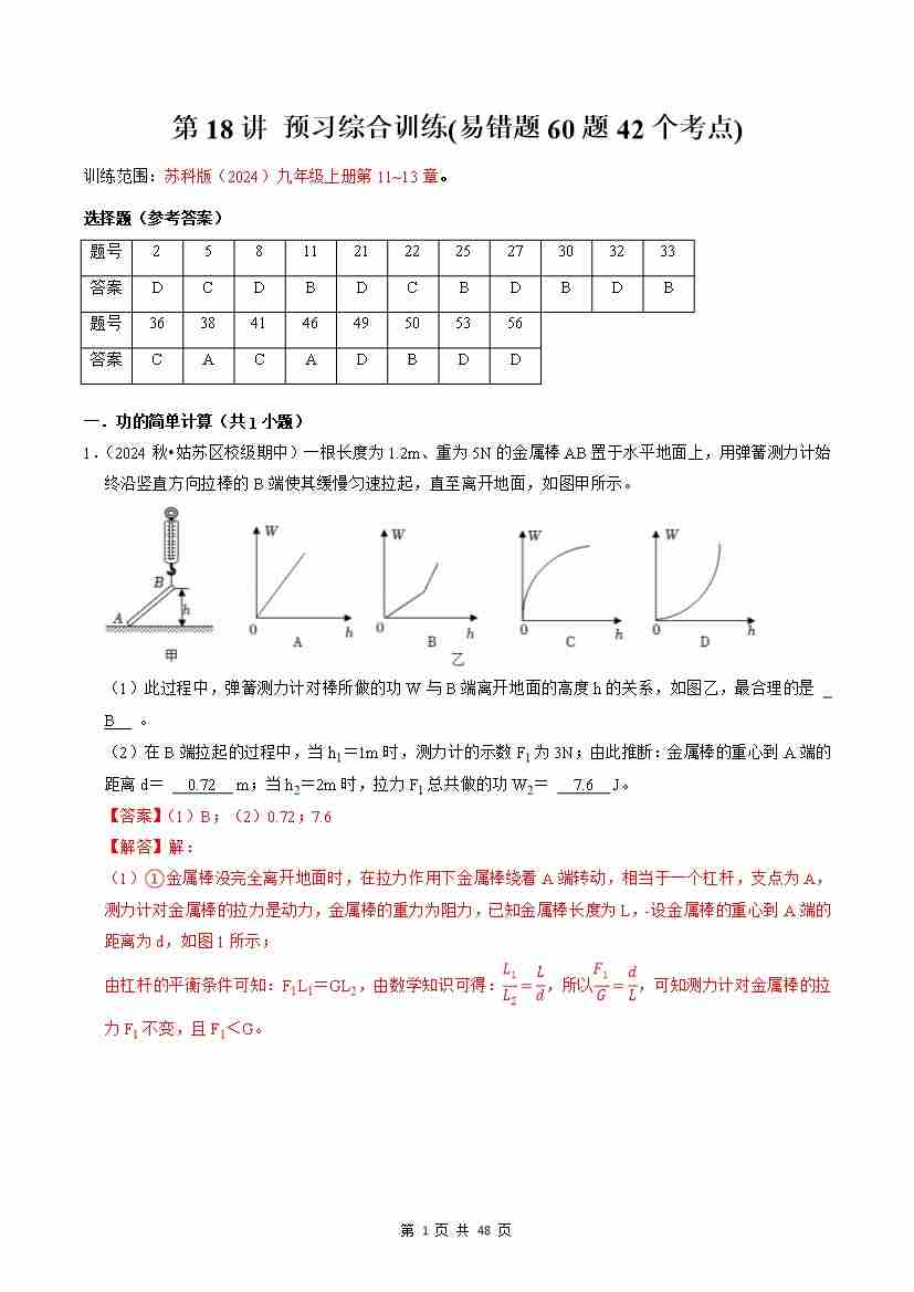 【苏科】第18讲:预习综合训练(易错题60题42个考点)(预习)(解析版)