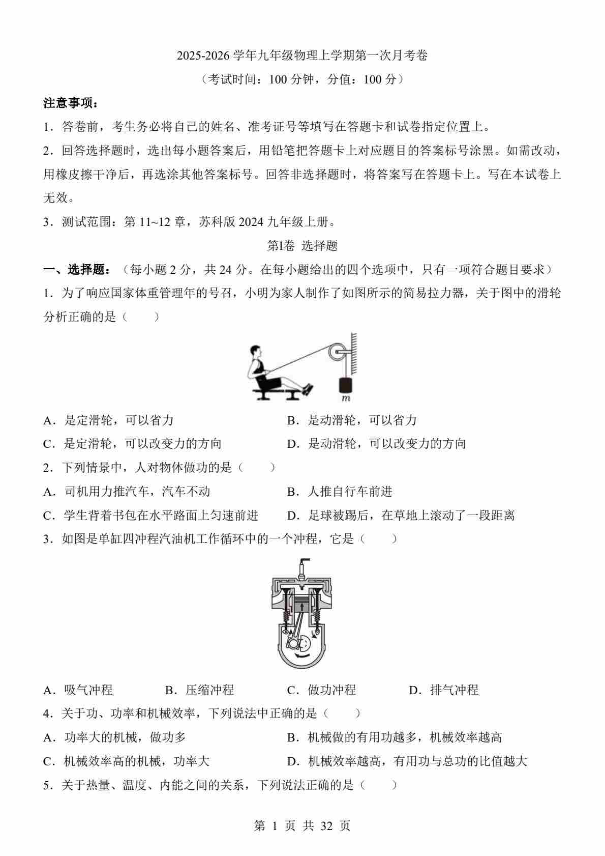 【苏科】9上物理第1次月考【第11-12章】