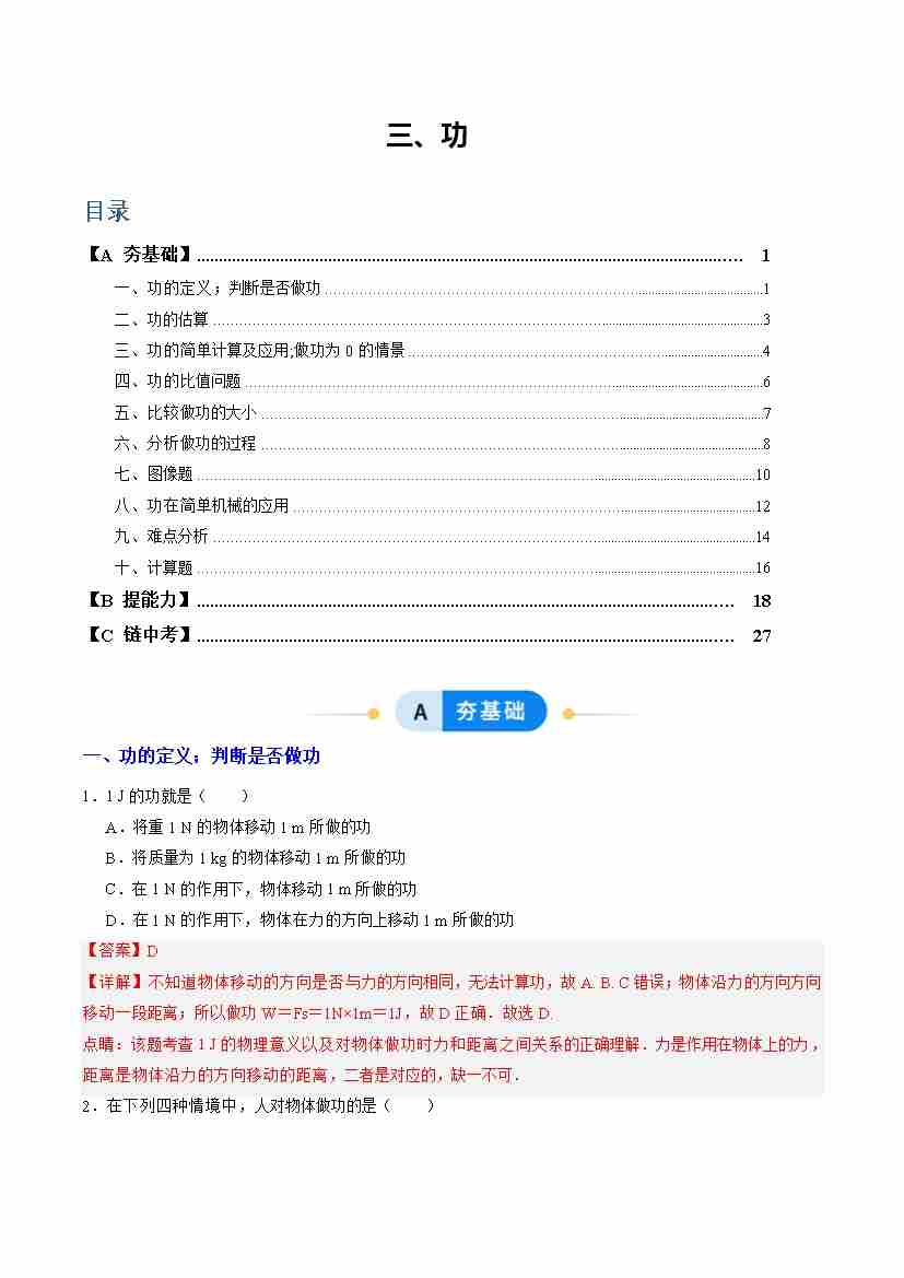 三、功(分层作业)(解析版)