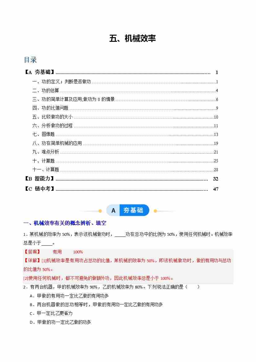 五、机械效率(分层作业)(解析版)