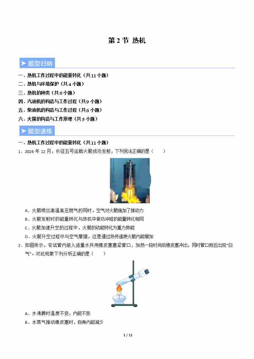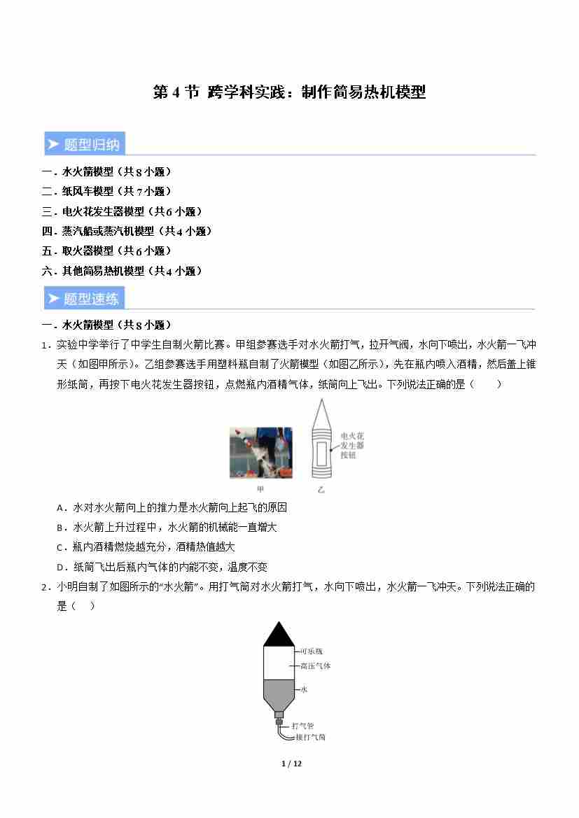 第4节 跨学科实践:制作简易热机模型(重难点训练)(原卷版)