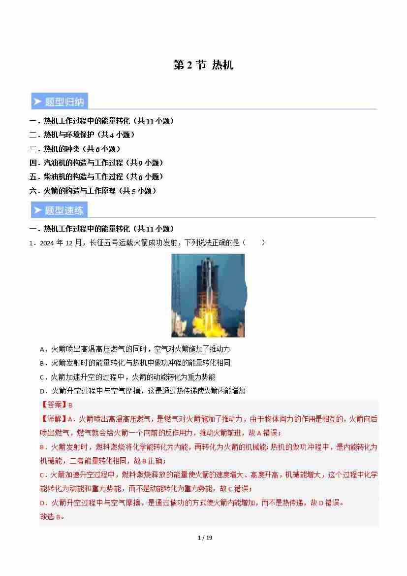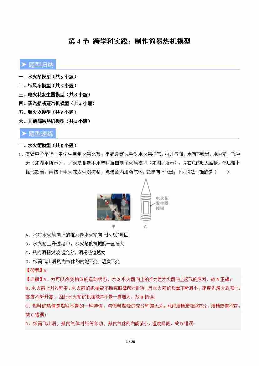 第4节 跨学科实践:制作简易热机模型(重难点训练)(解析版)