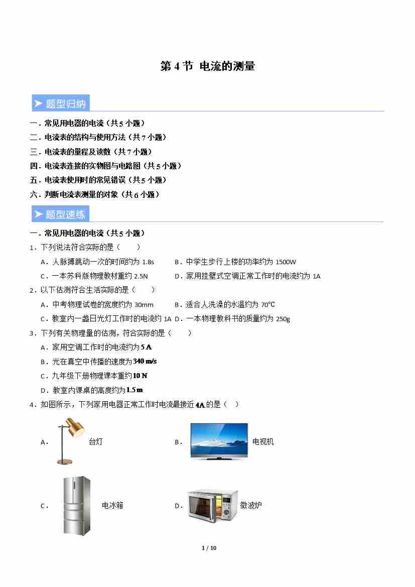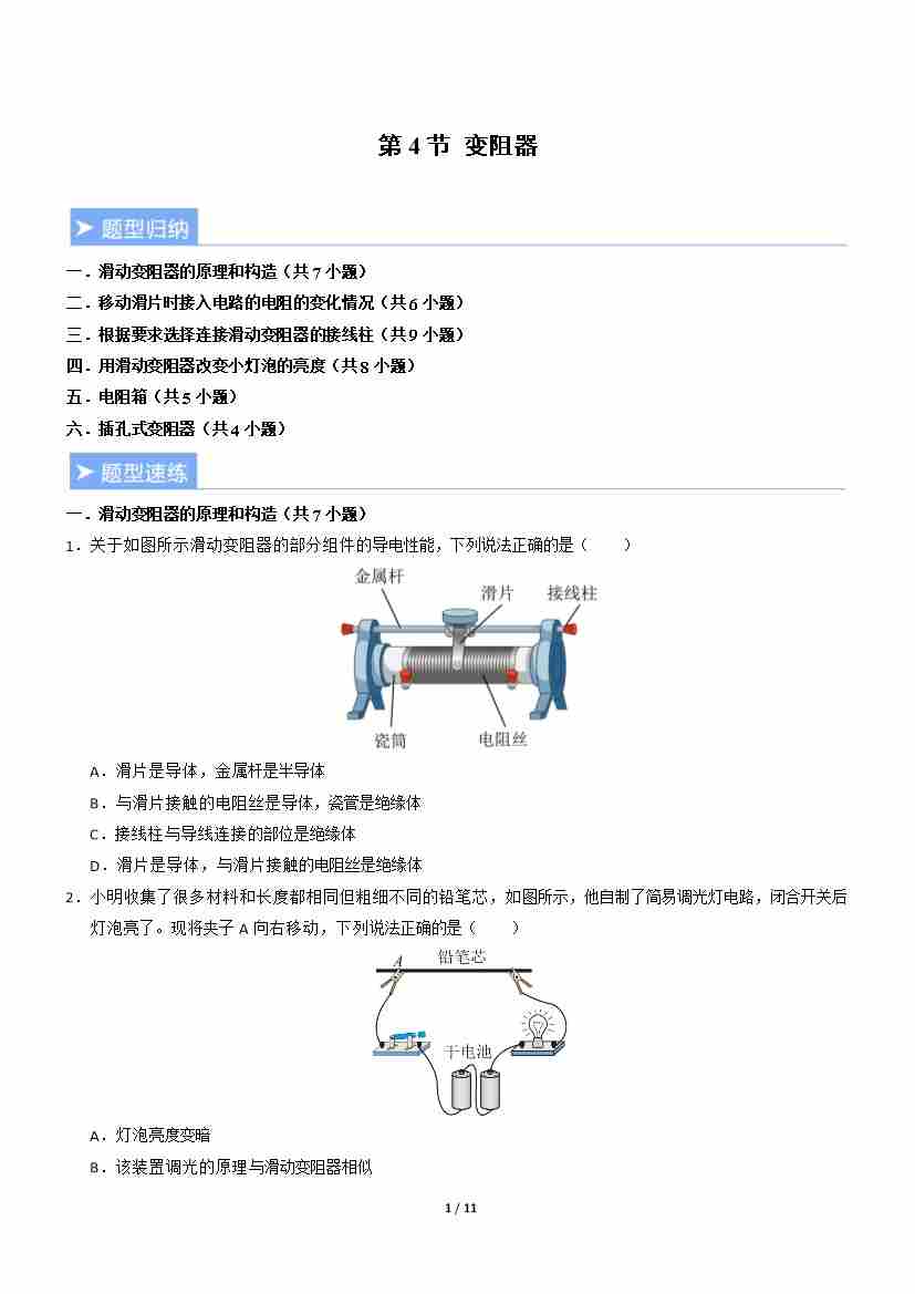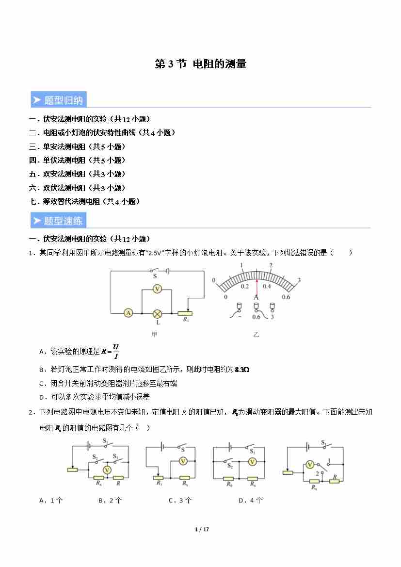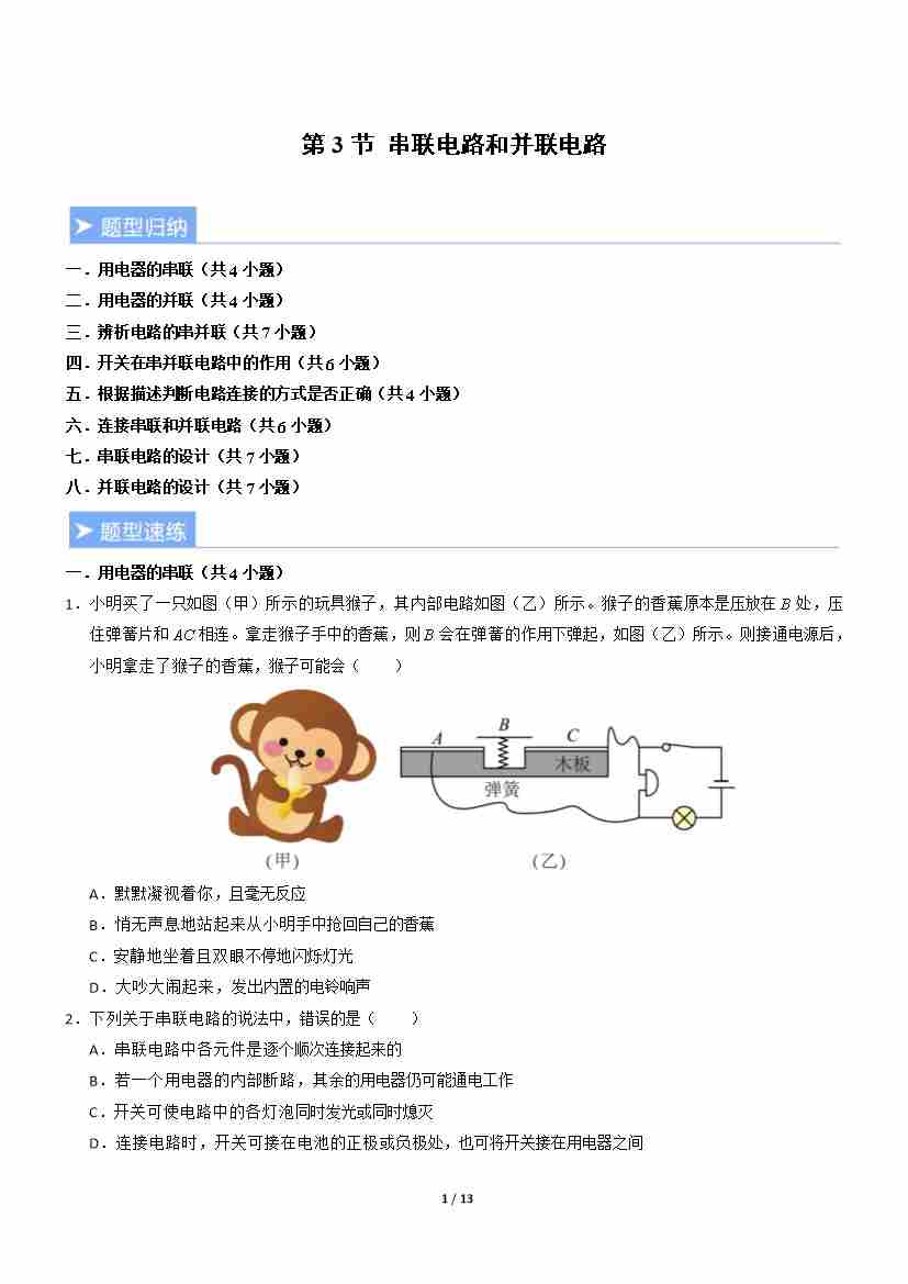 第3节 串联电路和并联电路(重难点训练)(原卷版)