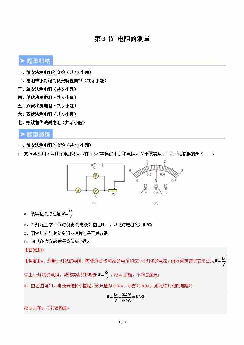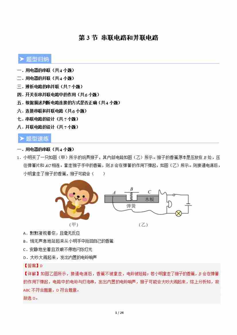 第3节 串联电路和并联电路(重难点训练)(解析版)