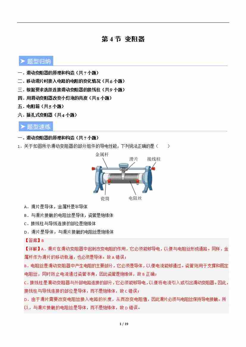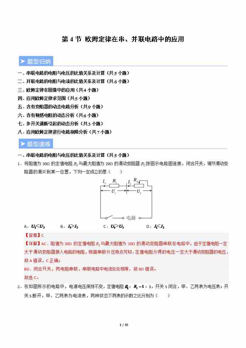 第4节 欧姆定律在串、并联电路中的应用(重难点训练)(解析版)