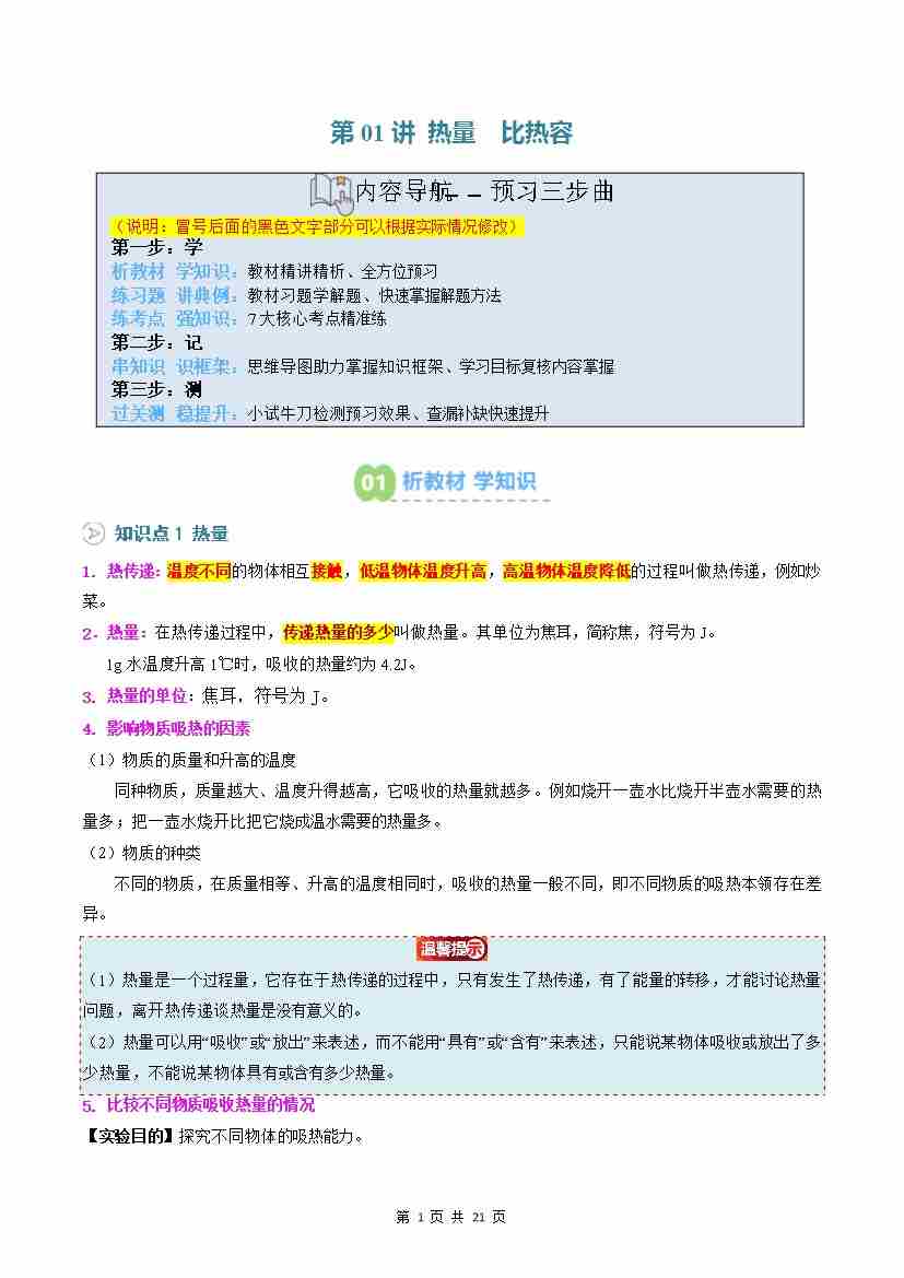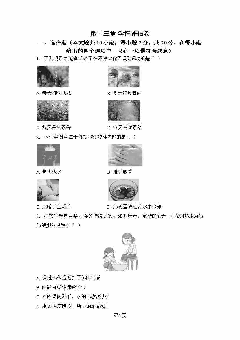 第十三章 内能 学情评估卷(含解析)2025-2026学年人教九年级物理全册