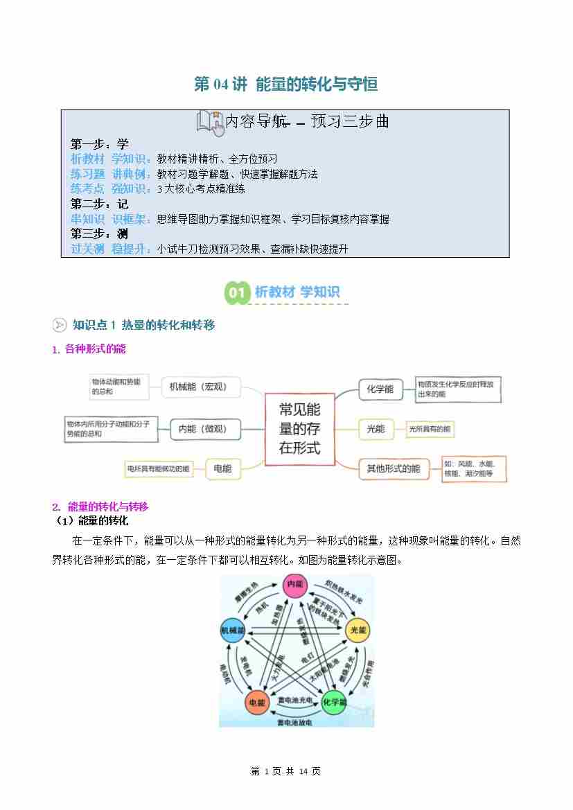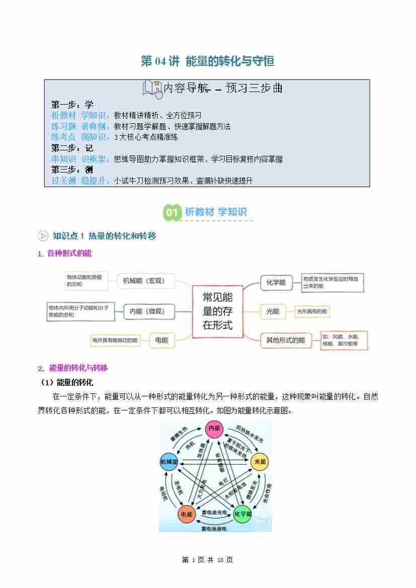 第04讲: 能量的转化于守恒(预习)(解析版)