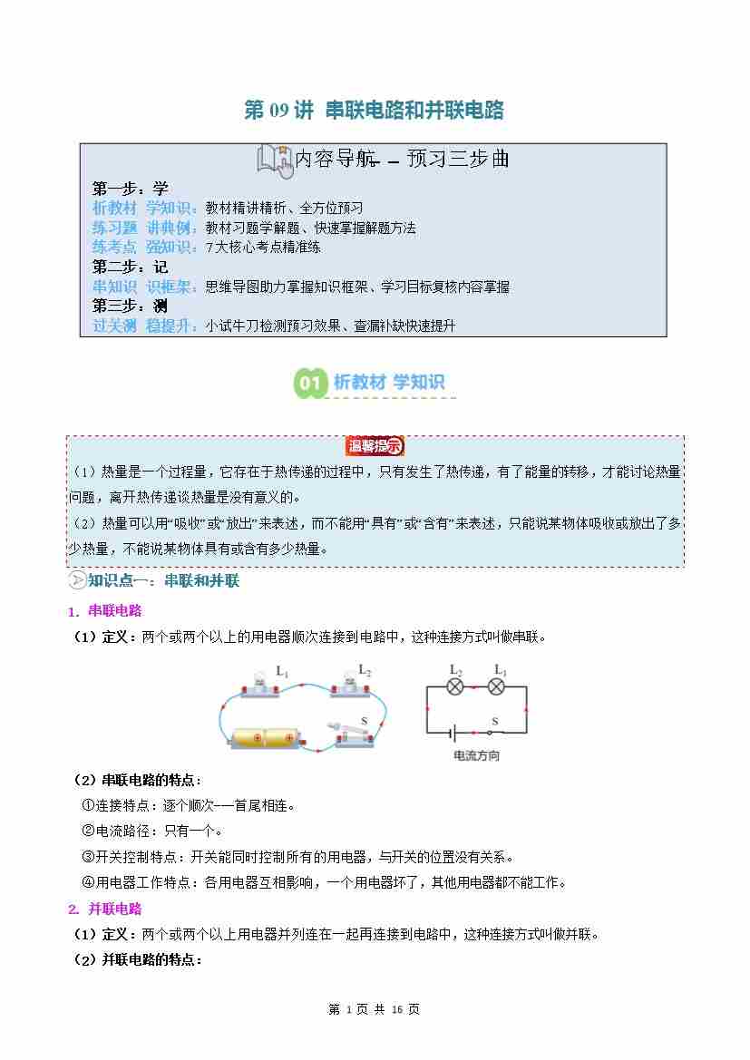第09讲: 串联电路和并联电路(预习)(解析版)