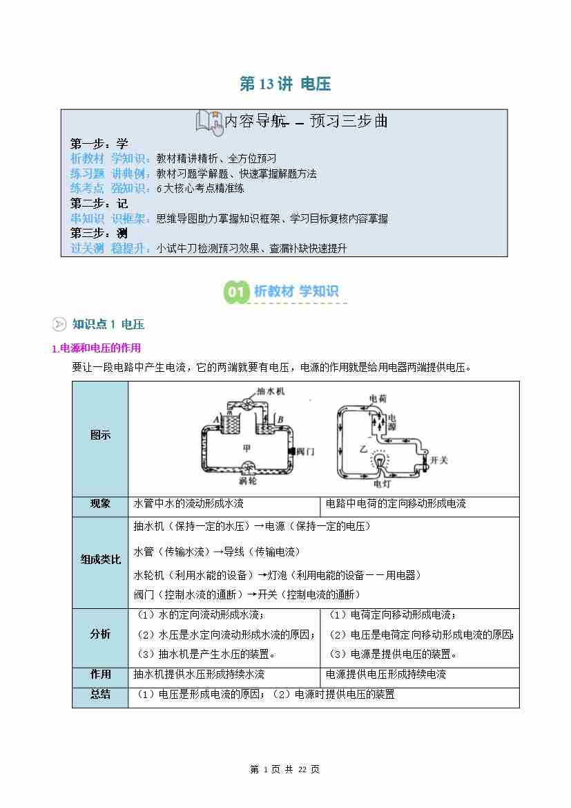 第13讲: 电压(预习)(原卷版)