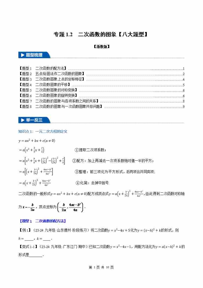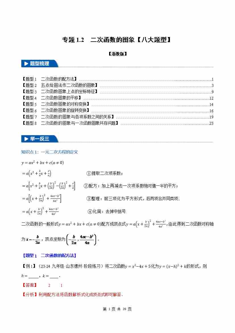 专题1.2 二次函数的图象【八大题型】(举一反三)(浙教版)(原卷版)